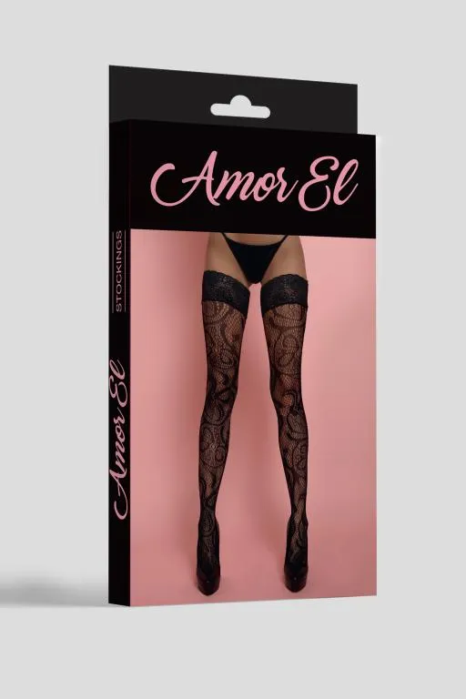 Чулки c ажурным рисунком, сверху украшены кружевной резинкой на силиконе. Плотность эквивалентна 20 ден. Благодаря использованию большего количества нейлона, белье сохраняет очертания, не деформируется, растягивается и выгодно облегает фигуру. А за счет эластана, даже после сильного растяжения, оно не деформируются, и всегда принимает исходную форму.