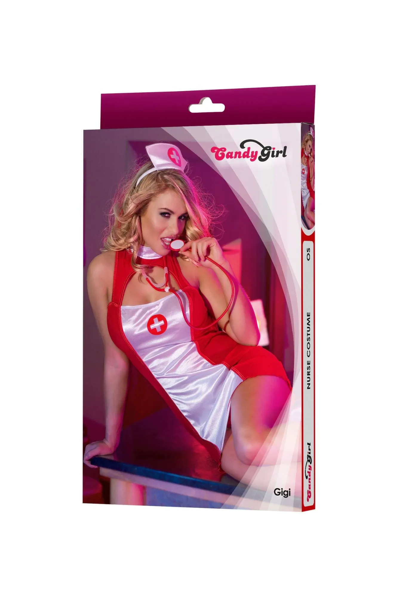 —Костюм медсестры Candy Girl Gigi (платье, головной убор, стетоскоп), красный, OS