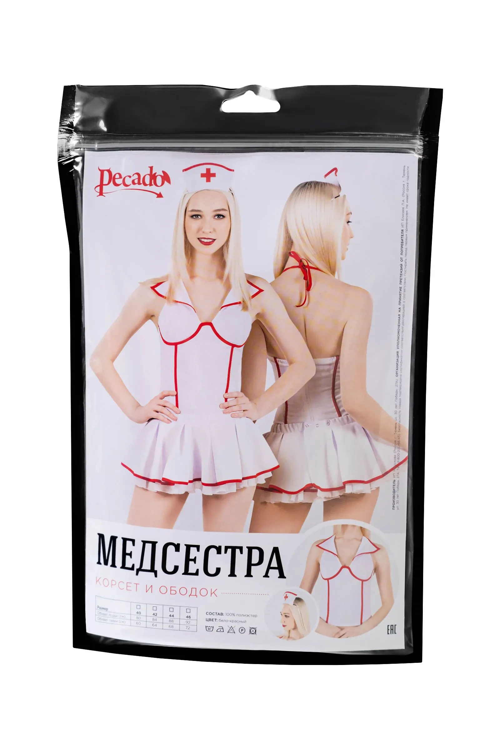 —Верхняя часть костюма «Медсестра», Pecado BDSM, корсет, головной убор, бело-красный, 42