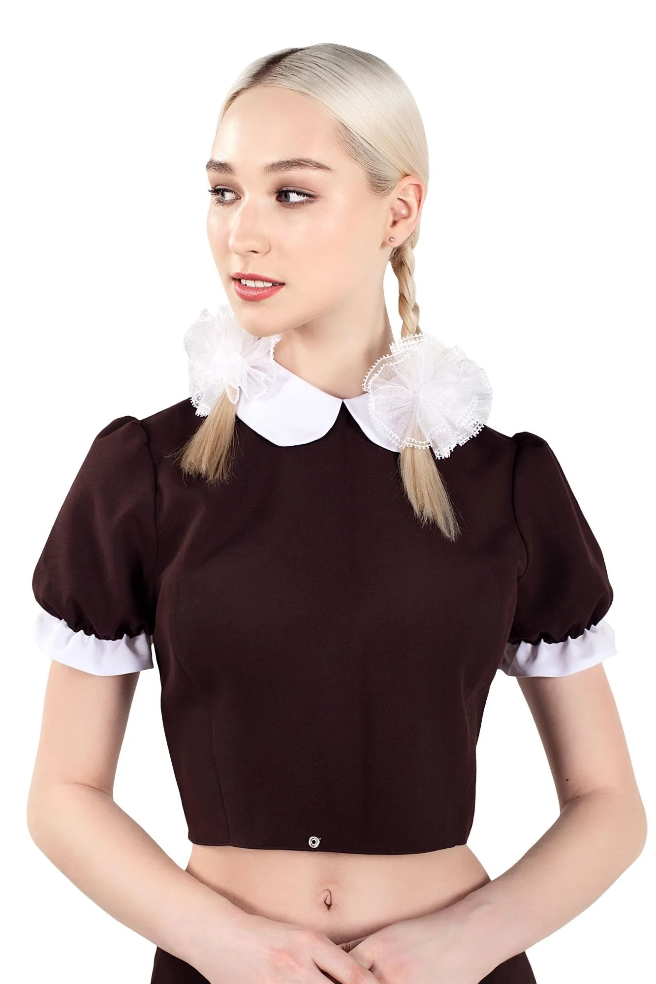 Верхняя часть костюма «Русская школьница», Pecado BDSM, топ, банты, коричнево-белый, 42