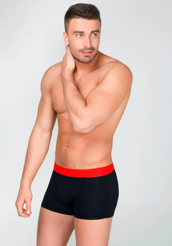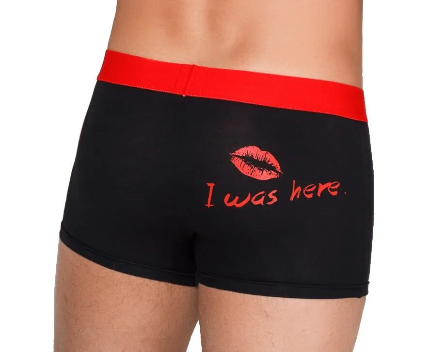 Черные мужские трусы-боксеры "Marcus" от компании Infinity Lingerie изготовлены из хлопка с добавлением эластана. Сзади трусы украшены изображением страстного поцелуя и надписью "I was here". Широкая эластичная резинка трусов, выполненная в контрастном красном цвете, будет комфортно прилегать к телу и не создаст дискомфорта во время ношения. Трусы отлично подойдут как для повседневного ношения, так и для романтического вечера с возлюбленной благодаря прекрасной посадке по фигуре и игривому дизайну.