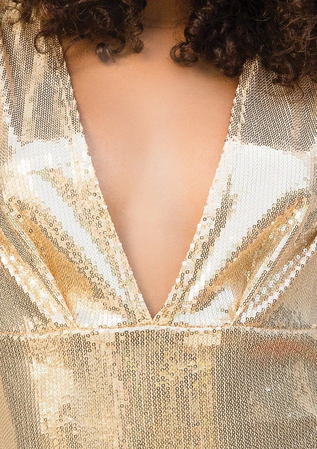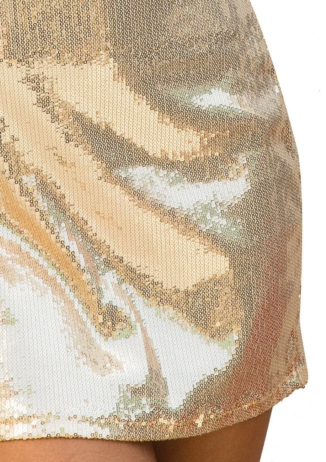 Сияющее золотистое мини-платье подчеркнет Вашу сексуальность и соблазнительность. Оно достаточно короткое, поэтому не скроет Ваших ножек, а глубокий вырез в зоне декольте акцентирует внимание на груди.