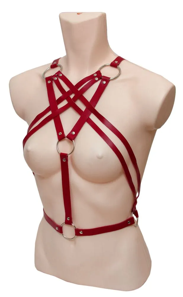 Бондажный комплект с перекрестными ремнями, красный