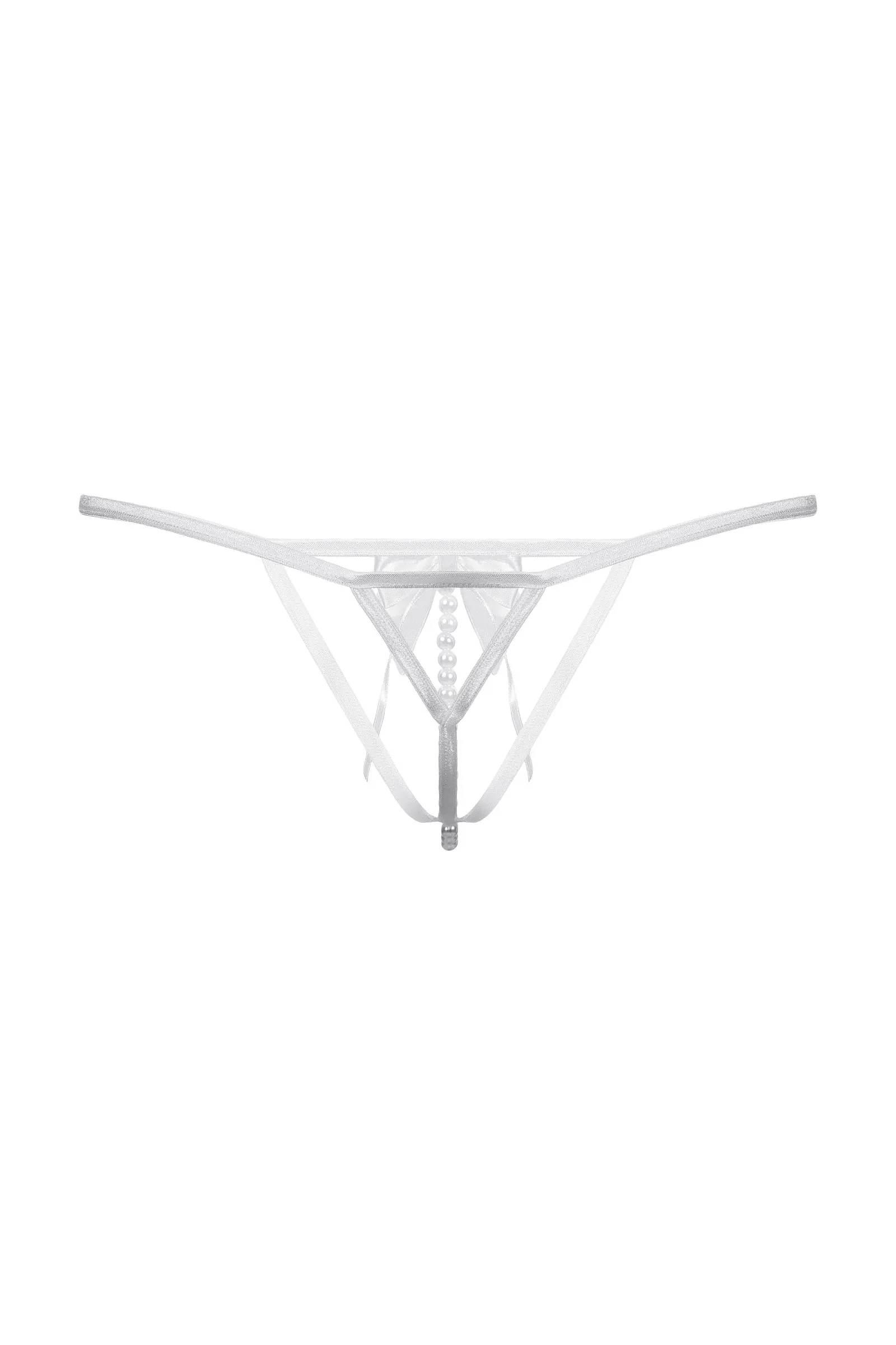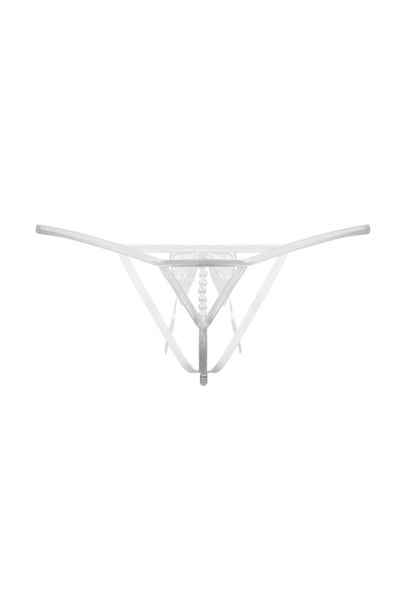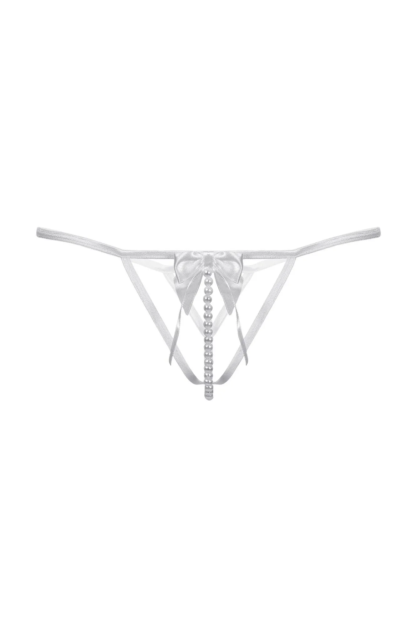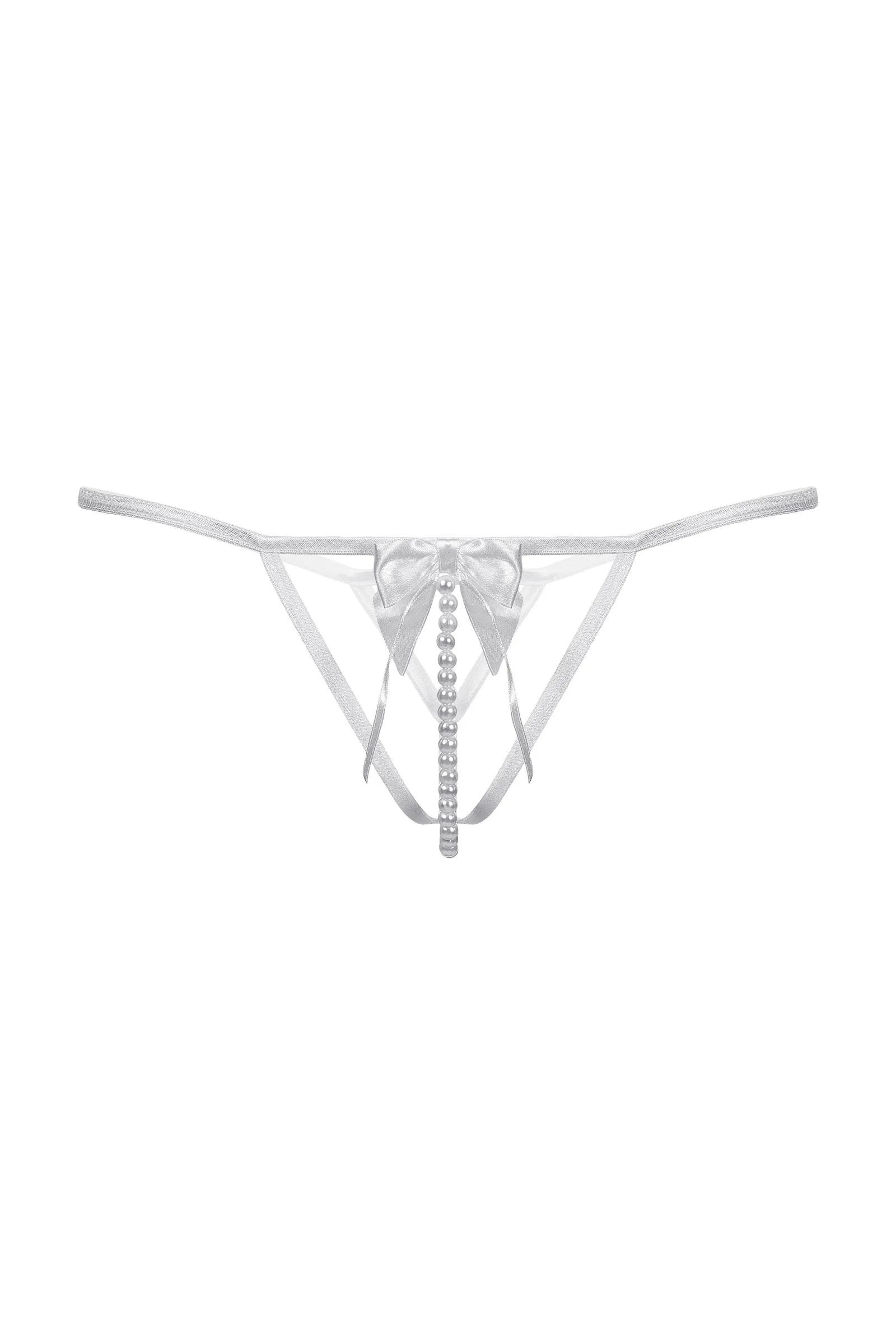 Стринги с открытым доступом. Спереди декорированы роскошным атласным бантом и нитью "жемчуга".