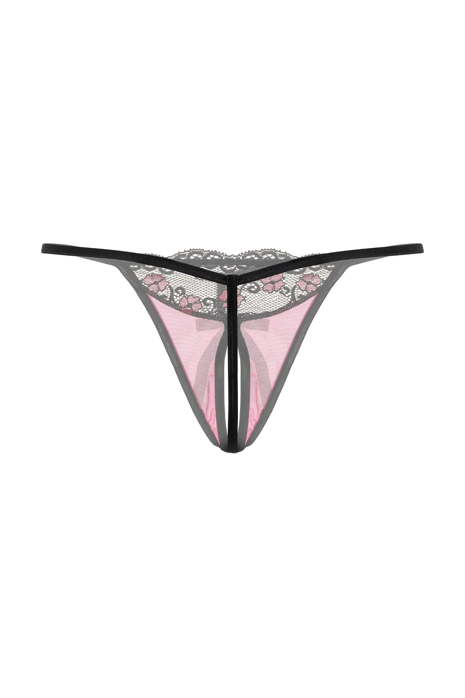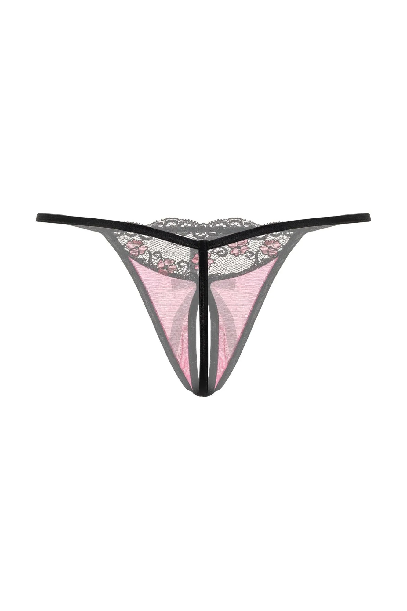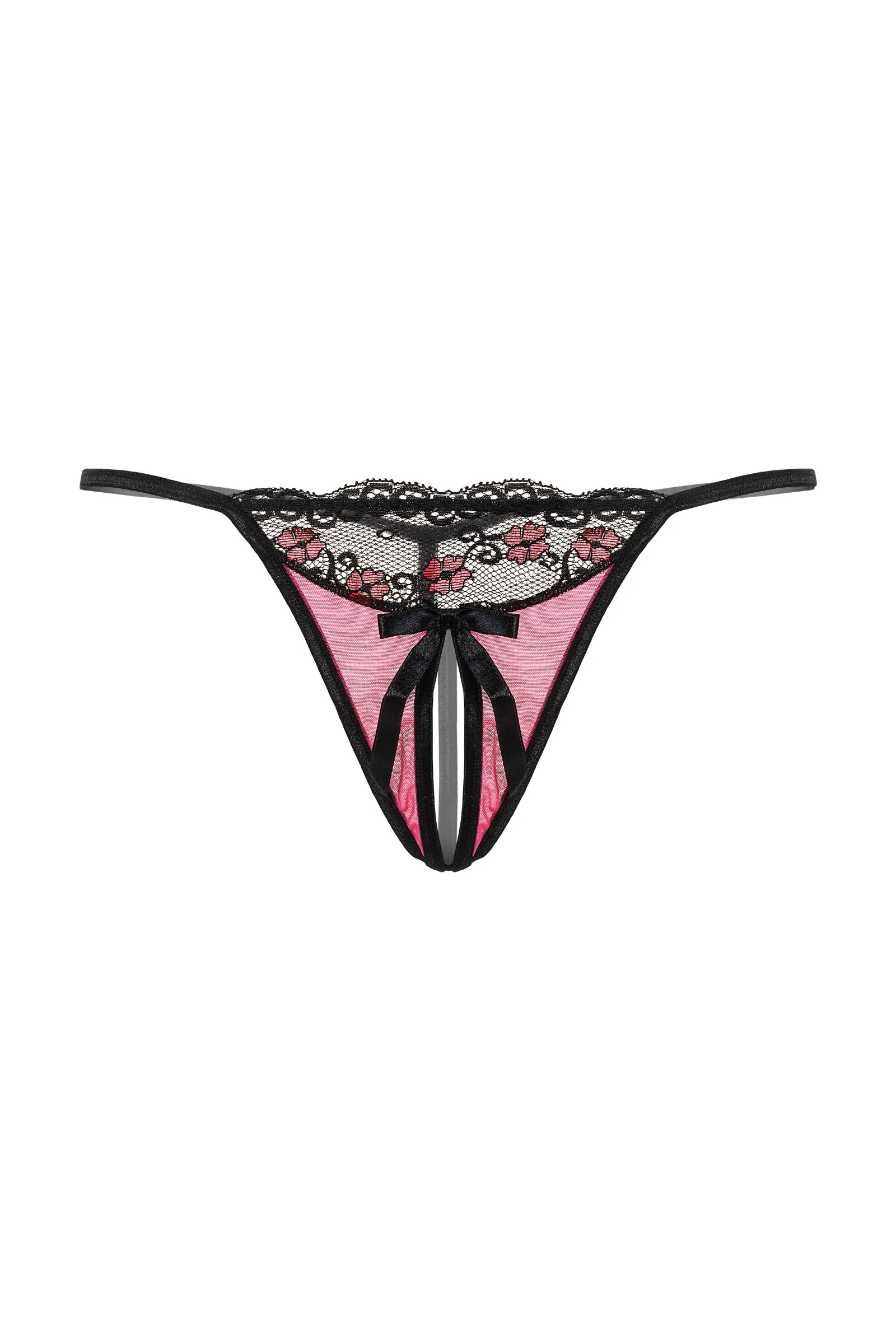 Кружевные Т-стринги с открытым доступом. Спереди декорированы кокетливым бантиком.