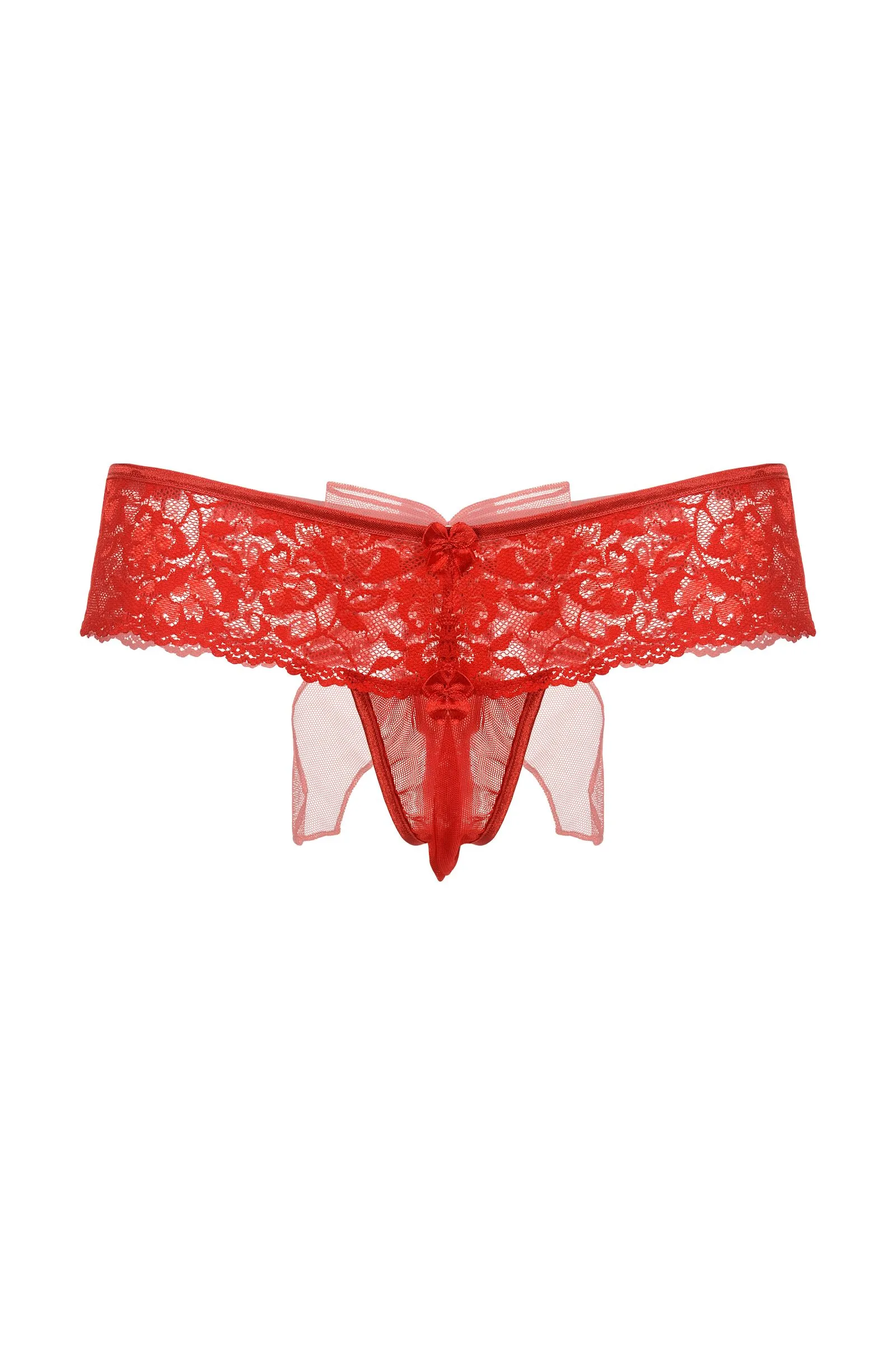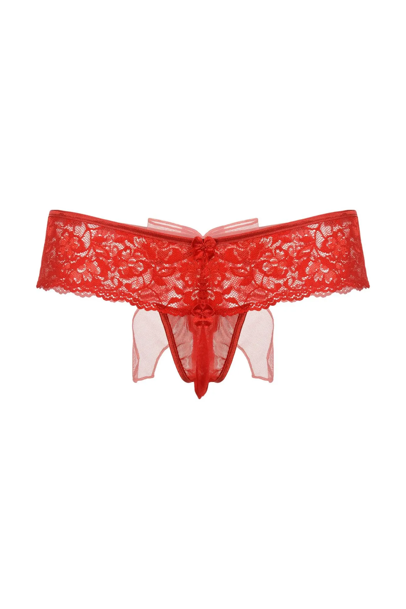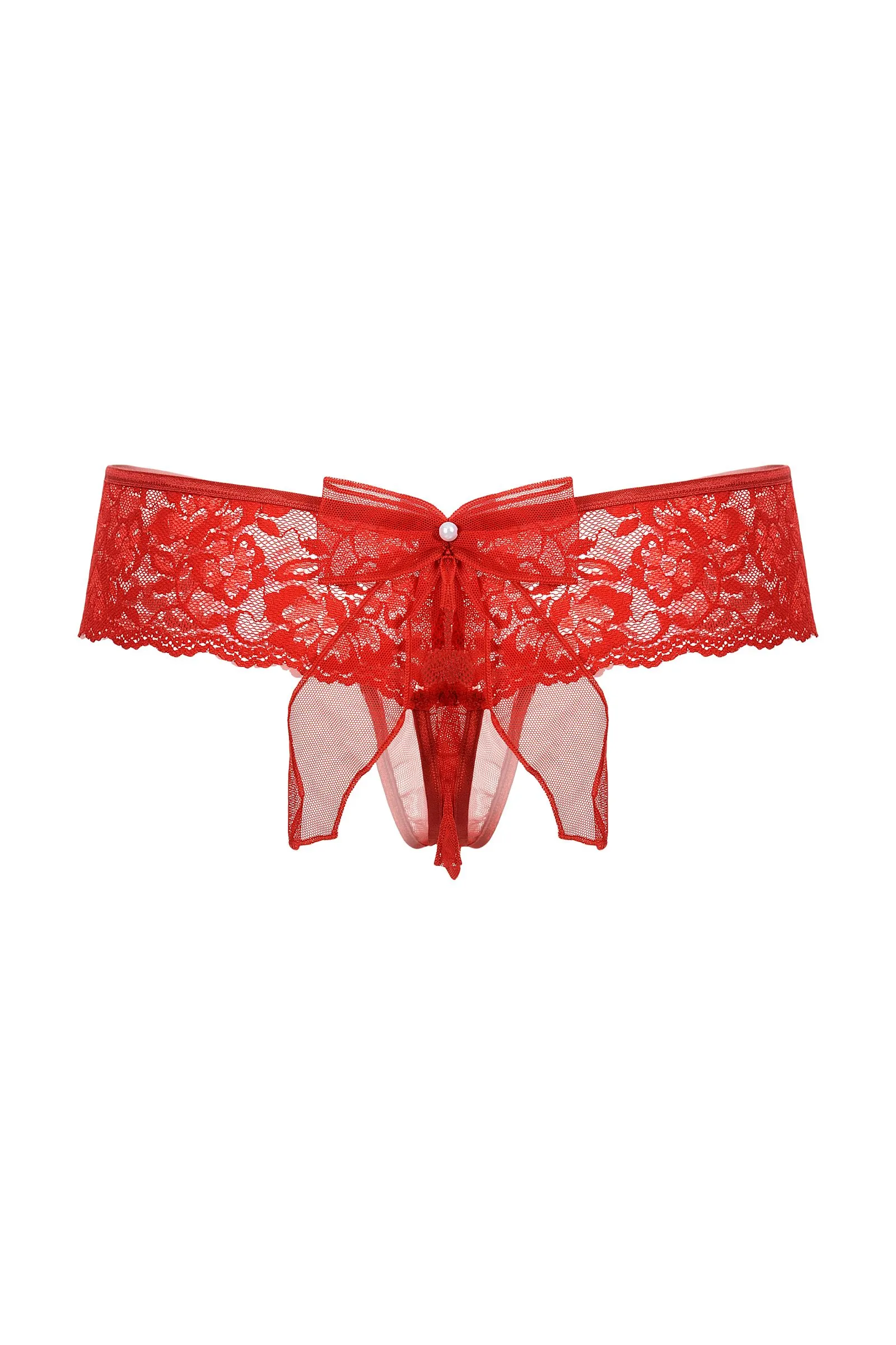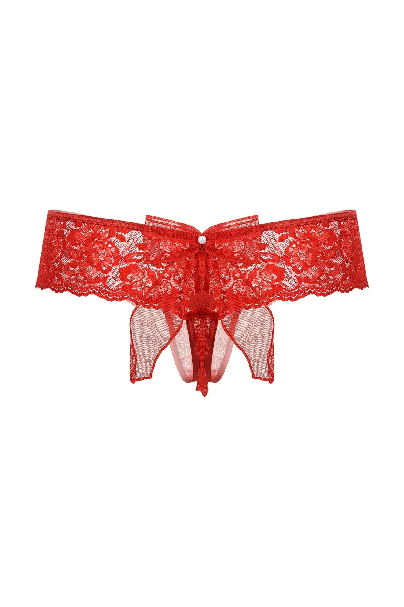 Шортики с бантиком открытые кружевные SoftLine Collection, красный, M/L