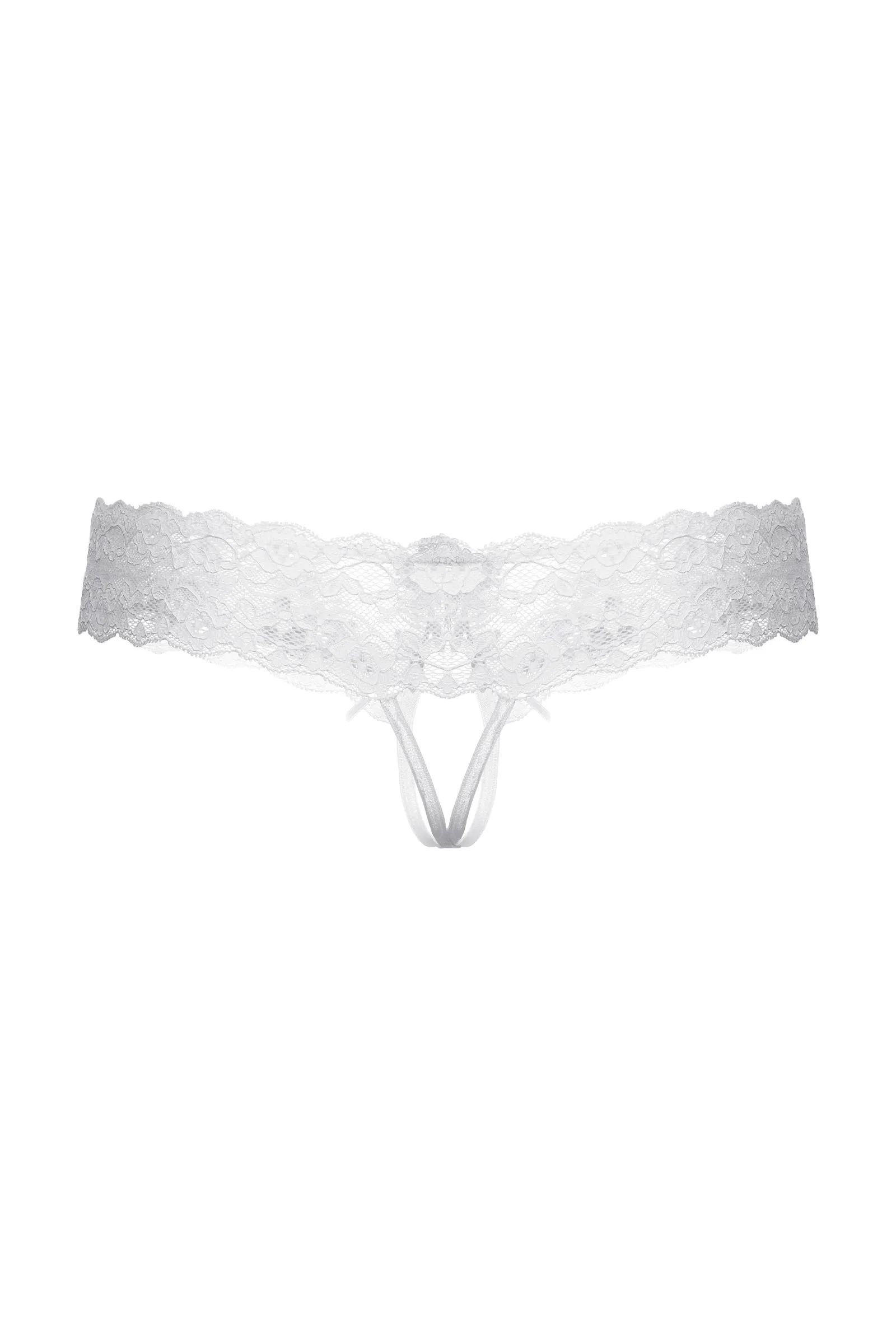 Трусики кружевные с открытым доступом выполнены из роскошного кружева. Широкая кружевная резинка с необычно углубленным верхним краем подчеркивает соблазнительную линию бедер. Спереди декорированы кокетливым бантиком.