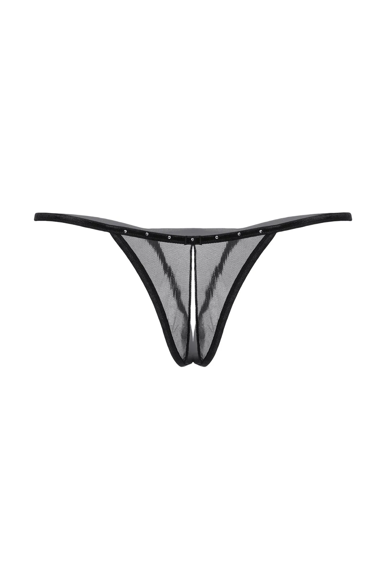 Стринги открытые со стразами SoftLine Collection, черный, S/L