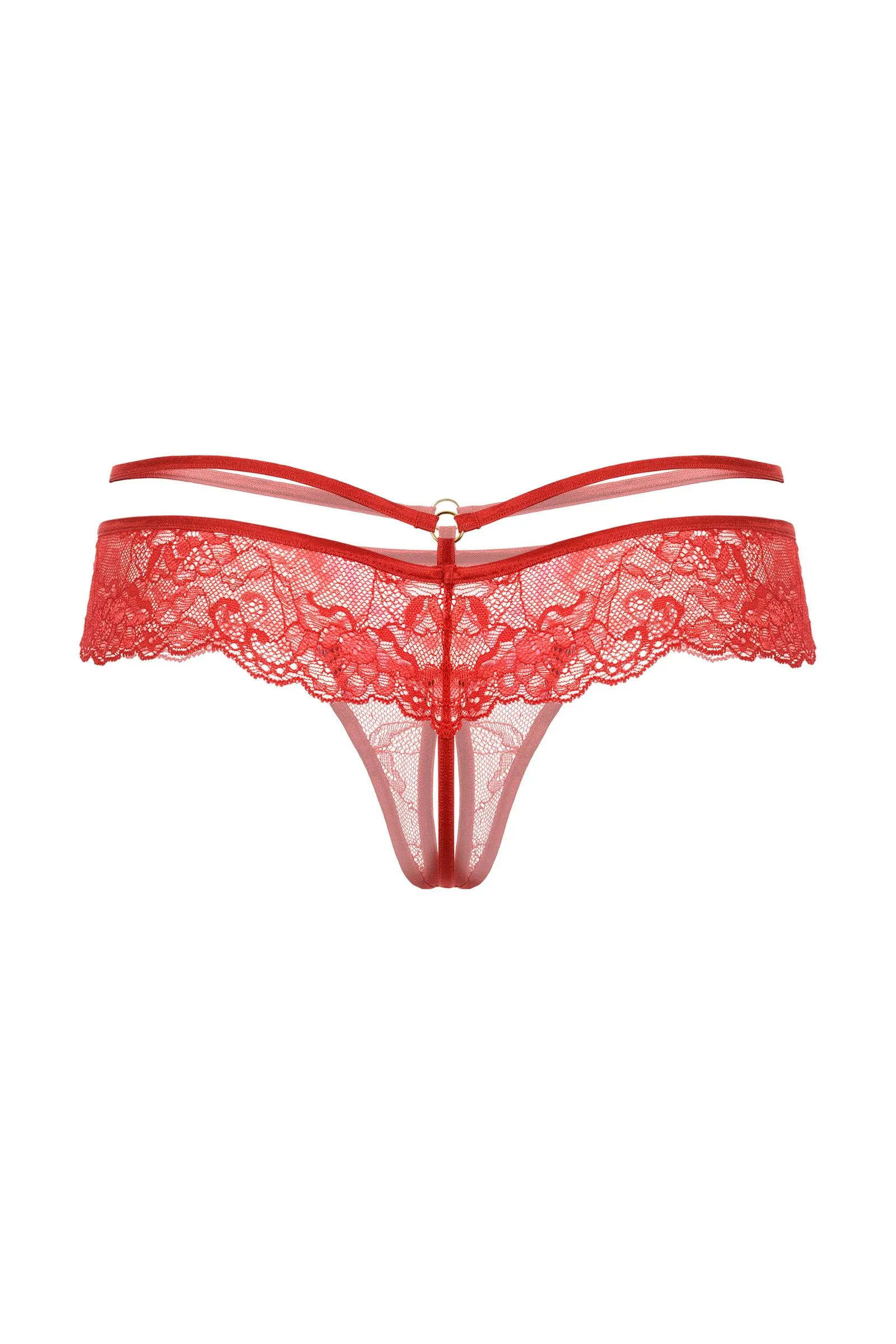 Трусики кружевные с открытым доступом выполнены из роскошного кружева. Тонкая резиночка подчеркивает соблазнительную линию бедер. Спереди декорированы изящным колечком.