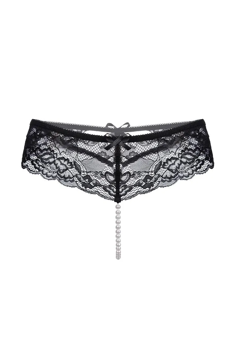 Эротические трусики с жемчужной нитью Erolanta Amy кружевные, черный 42-44