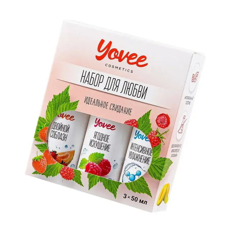 "Набор для любви" от бренда Yovee идеально подходит для эротических экспериментов. В одной упаковке три съедобных, увлажняющих геля на водной основе. Первый обладает сочным вкусом и ароматом клубники с дыней, второй - соблазнительной малины с мятой, третий - ухаживающий с гиалуроном. Используйте самостоятельно или создайте свой вкус, смешивая их! Несмотря на сладость, гели не содержат сахара в составе, не нарушают микрофлору и pH-баланс. Подходят как для вагинального, так и для орального секса. Совместимы со всеми видами презервативов и игрушек для взрослых.