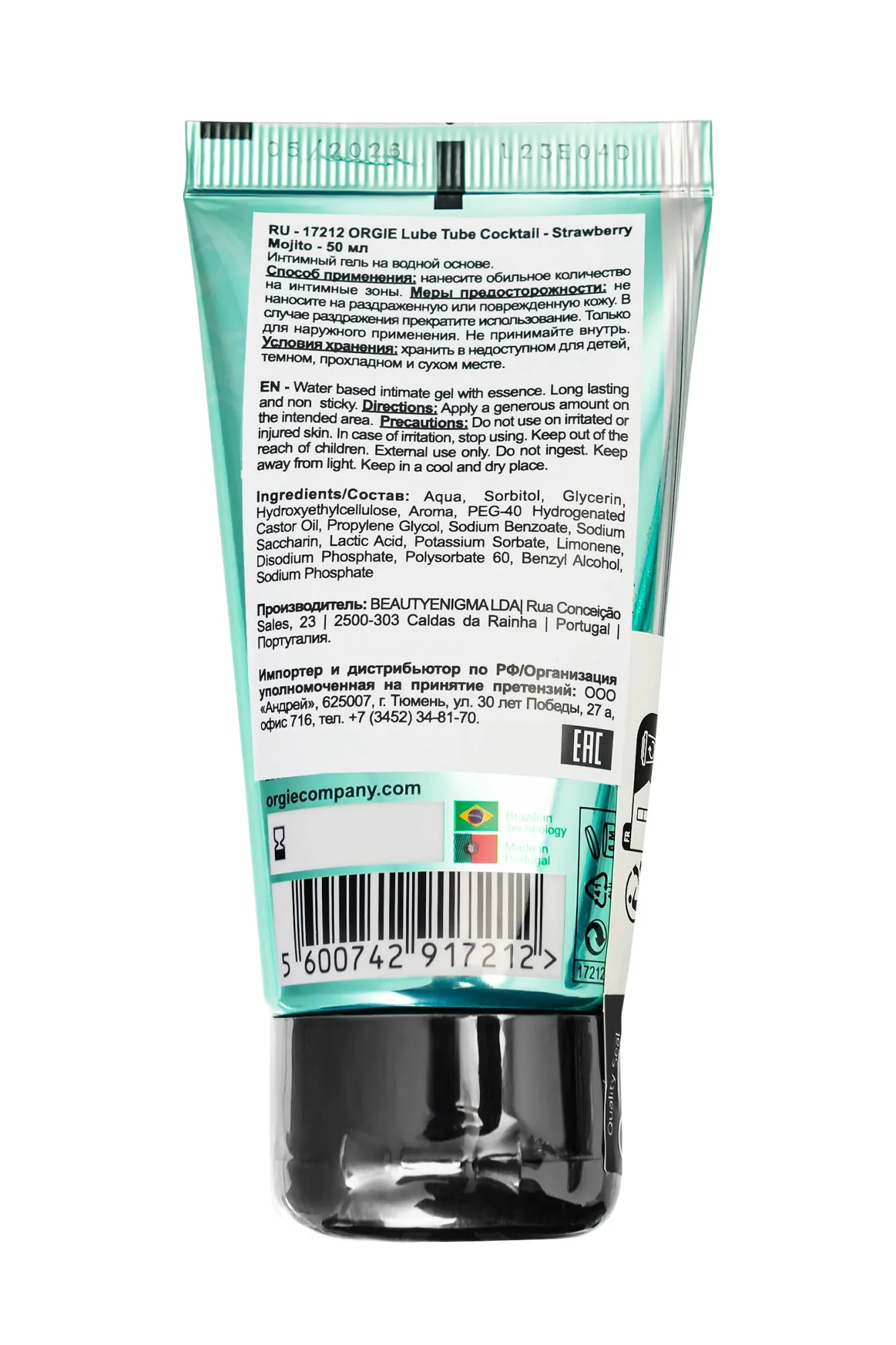 —Интимный гель Orgie LUBE TUBE на водной основе, со вкусом клубничного мохито, 50 мл