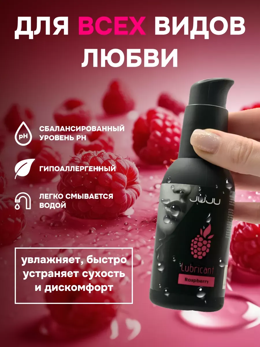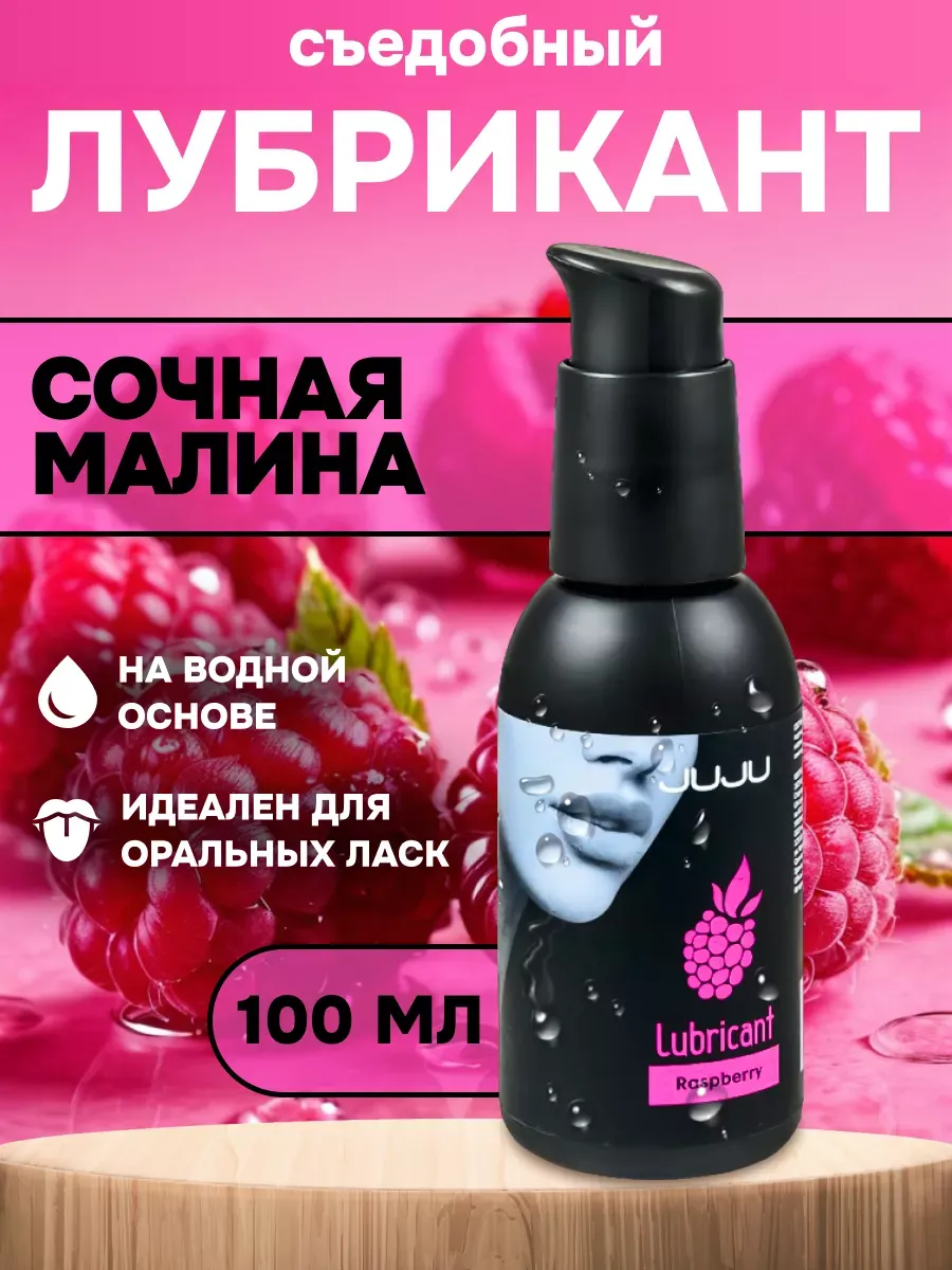 Съедобный лубрикант со вкусом малины отлично подойдет для любого вида близости. Водная основа смазки позволяет разнообразить интимную жизнь, обеспечивая продолжительное шелковистое скольжение. Лубрикант можно использовать с любыми интим игрушками, а также с презервативами. Состав: вода очищенная, глицерин, гидроксиэтилцеллюлоза, ароматизатор пищевой, бензоат натрия, сорбат калия, пропиленгликоль, сахаринат натрия, лимонная кислота, объем – 100 мл, производитель – JuJu (Россия).  срок годности-3 года.