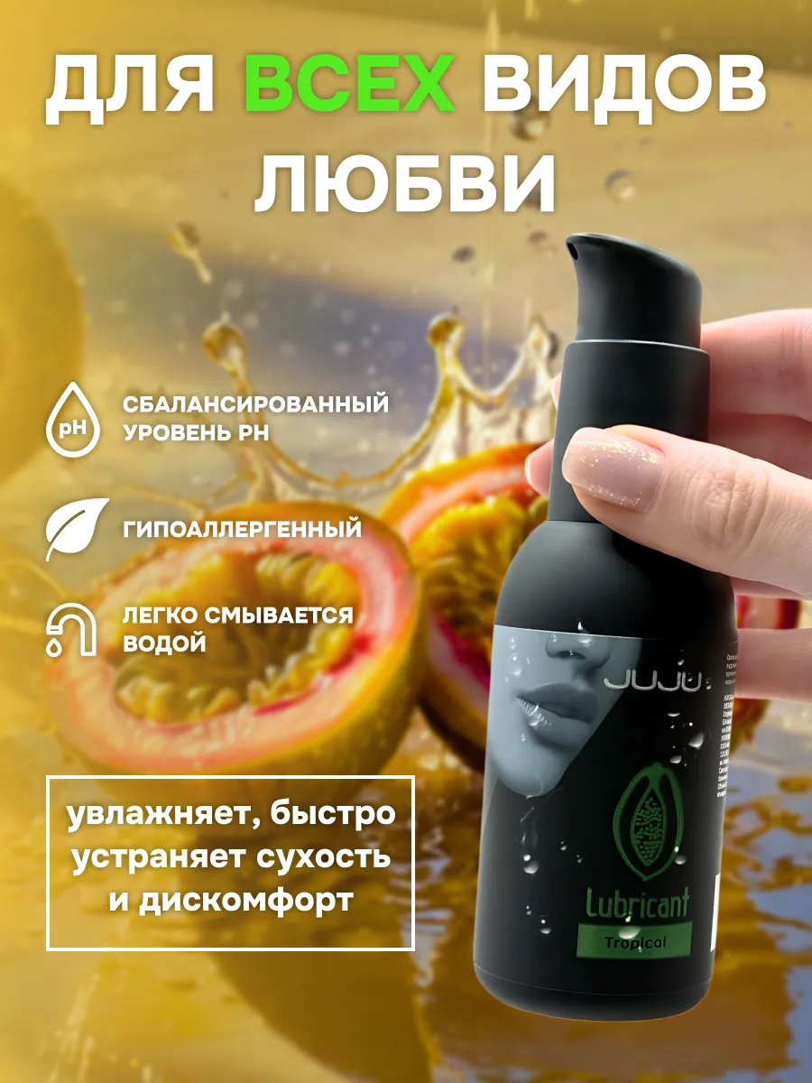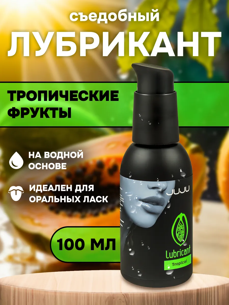 Съедобный лубрикант со вкусом тропических фруктов отлично подойдет для любого вида близости. Водная основа смазки позволяет разнообразить интимную жизнь, обеспечивая продолжительное шелковистое скольжение. Лубрикант можно использовать с любыми интим игрушками, а также с презервативами. Состав: вода очищенная, глицерин, гидроксиэтилцеллюлоза, бензоат натрия, сорбат калия, пропиленгликоль, ароматизатор пищевой, сахаринат натрия, лимонная кислота, объем – 100 мл, производитель – JuJu (Россия).  срок годности-3 года.