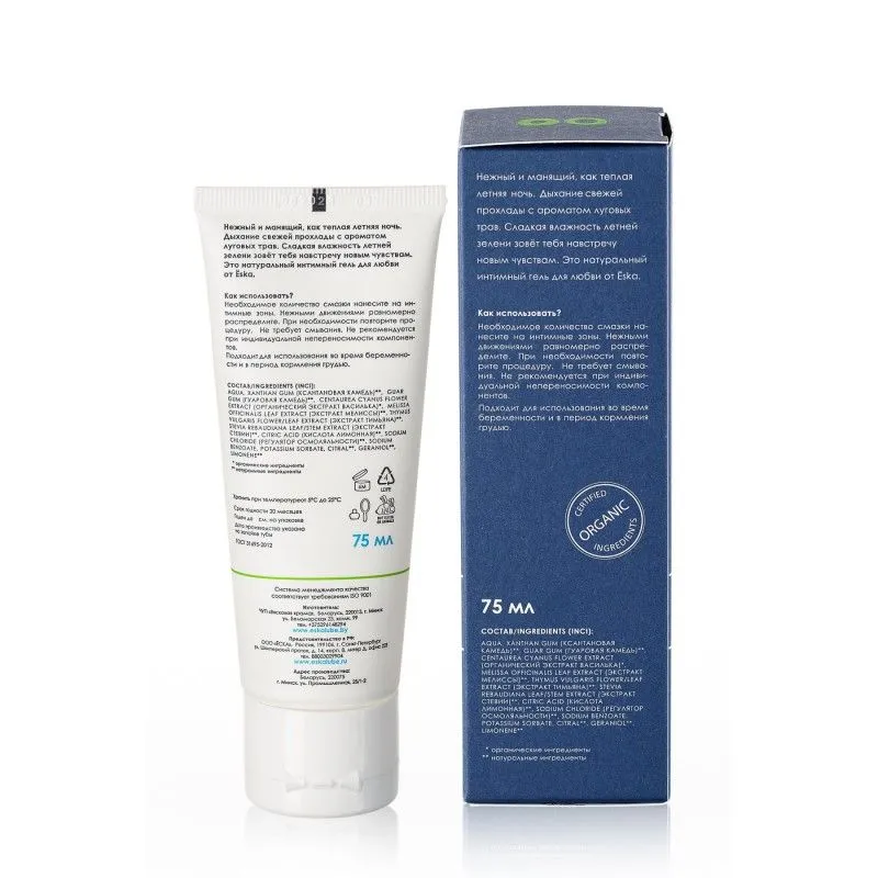 Ёska – это новое поколение лубрикантов со 100% безопасной, чистой и натуральной формулой. Формула содержит только сертифицированные органические экстракты и натуральные растительные ингредиенты, которые без вреда для здоровья помогут достичь полного комфорта и удовольствия во время занятий любовью. Попробуй вкус летней ночи! Манящий и нежный, как теплая летняя ночь. Дыхание свежей прохлады с ароматом луговых трав. Сладкая влажность летней зелени зовет тебя на встречу новым чувствам. Это натуральный лубрикант для любви от Ёska. Может использоваться для оральных ласк, безопасный при проглатывании.