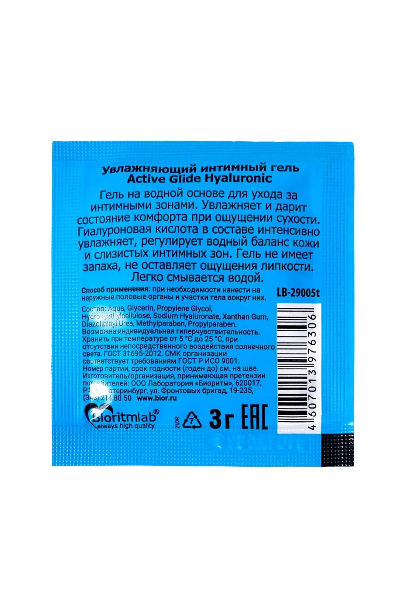 —Увлажняющий интимный гель ACTIVE GLIDE HYALURONIC, 3 г 20шт в упаковке