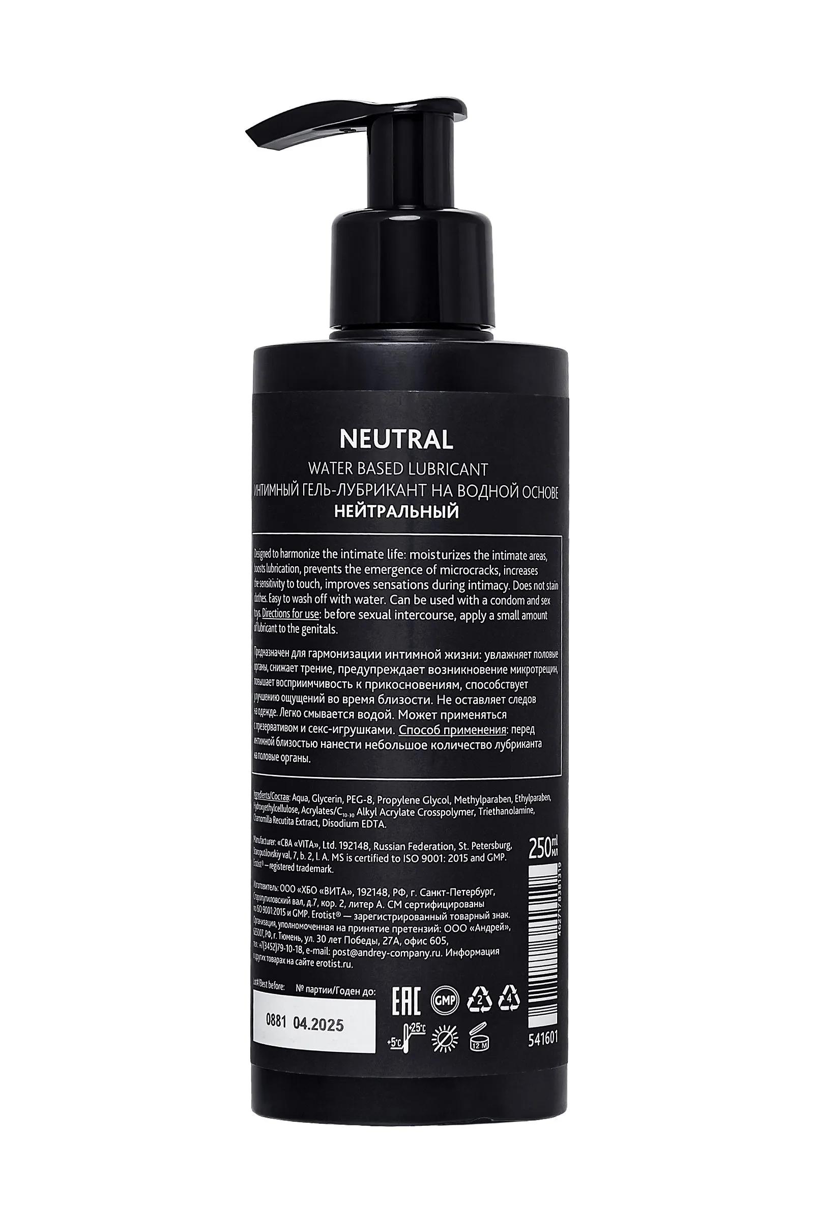 —Лубрикант Erotist на водной основе NEUTRAL, нейтральный, 250 мл