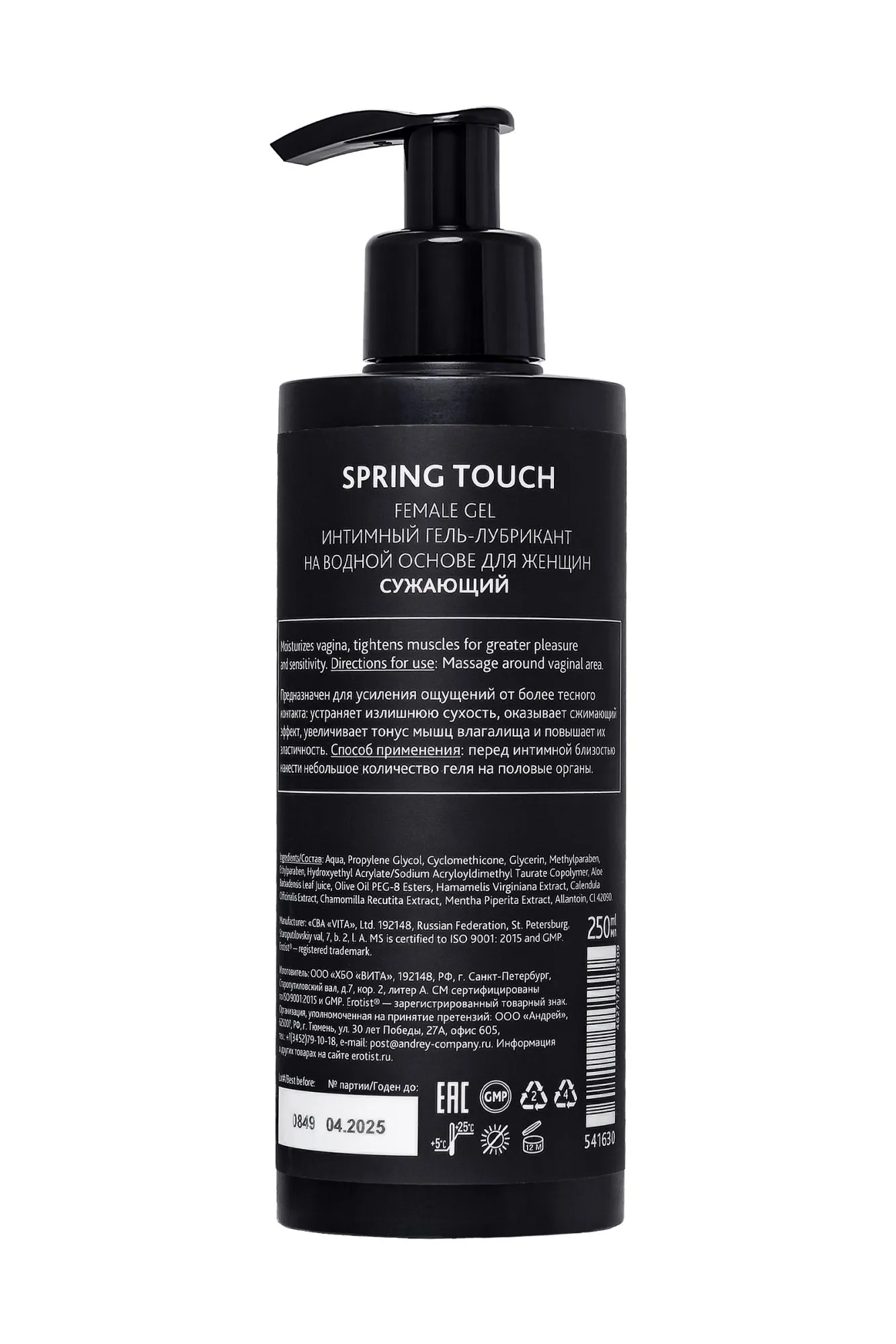 Как почувствовать весеннее прикосновение в любое время года? С помощью геля для женщин Erotist Spring Touch на водной основе. Этот гель создан, чтобы каждый день близость с партнёром радовала нежностью, похожей на поцелуй весны. Натуральные компоненты деликатно подчёркивают естественный аромат тела. Концентрация геля дарит шелковистое скольжение. Но самое главное — Erotist Spring Touch обладает сжимающим эффектом, который увеличивает тонус мышц влагалища. Тесный контакт, усиливающий степень эйфории, гарантирован!