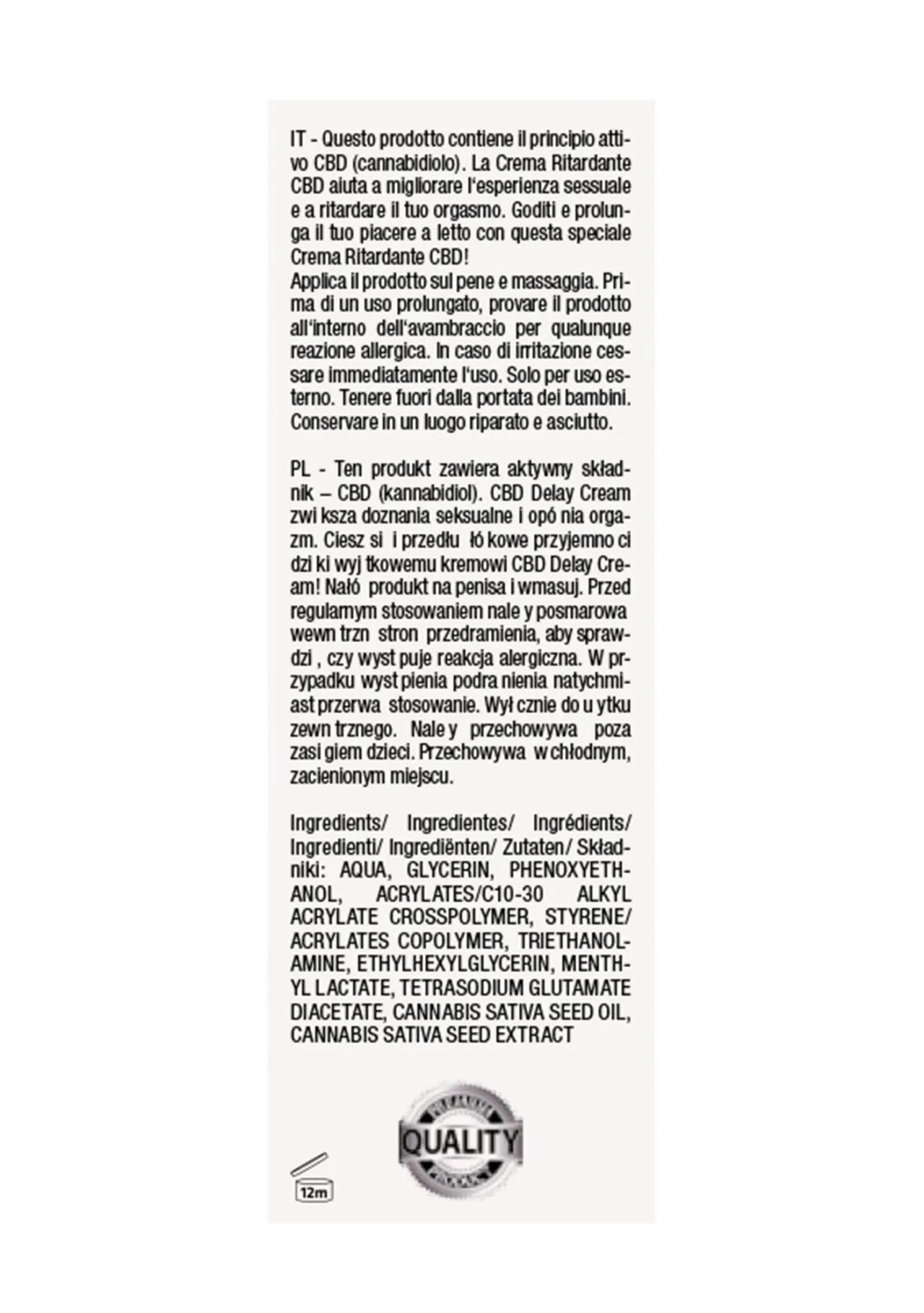 Крем-пролонгатор Natural CBD содержит активный ингредиент CBD (каннабидиол).