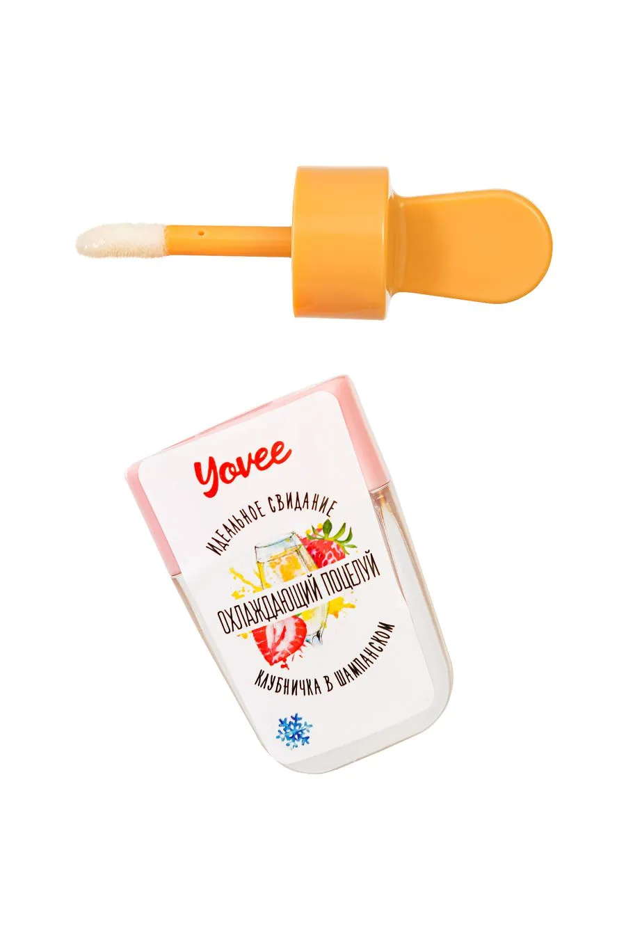 —Бальзам для губ Yovee «Охлаждающий поцелуй» с ароматом клубнички в шампанском, охлаждающий, 5 мл