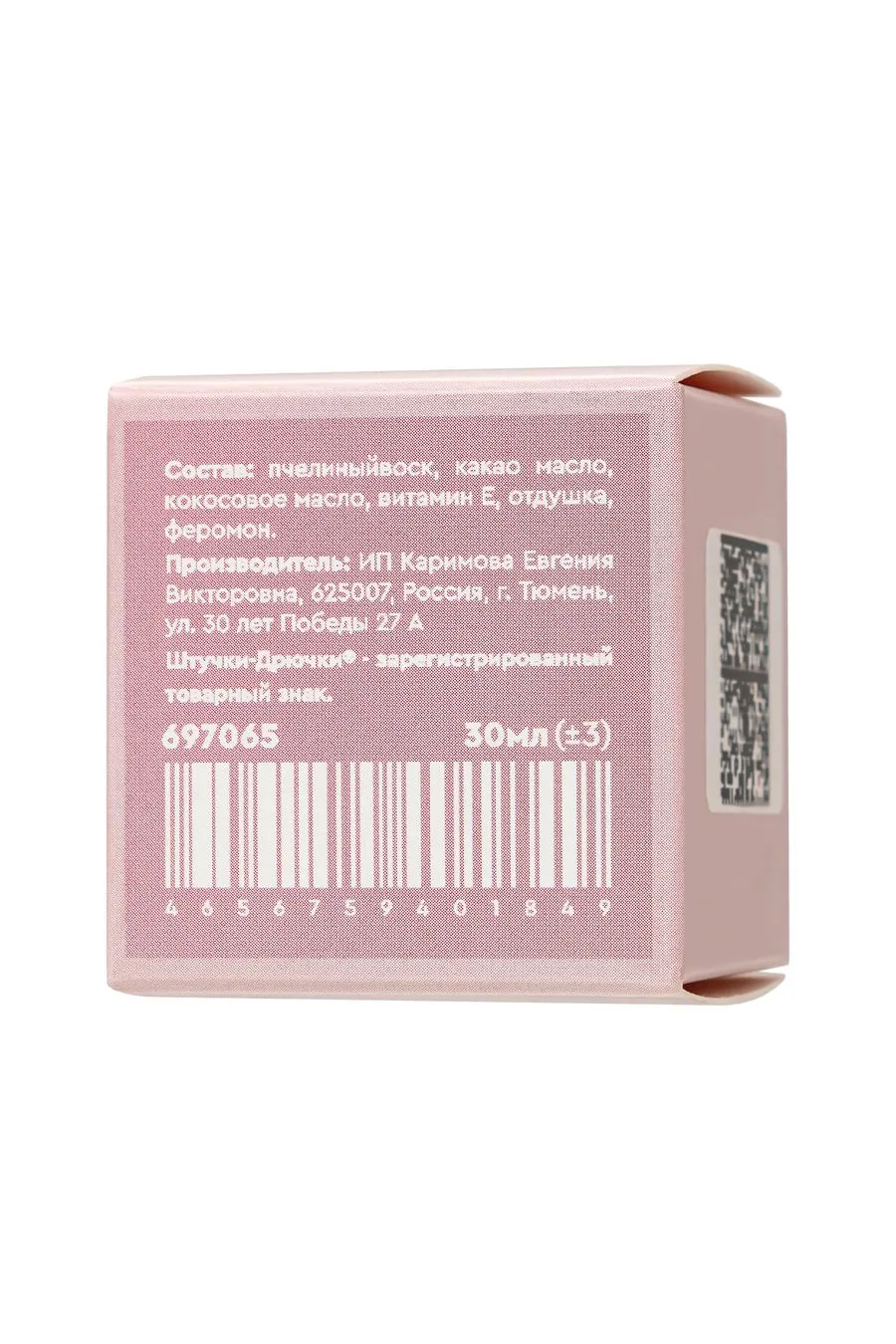 Пчелиный воск, какао масло, кокосовое масло, витамин Е, отдушка, феромон