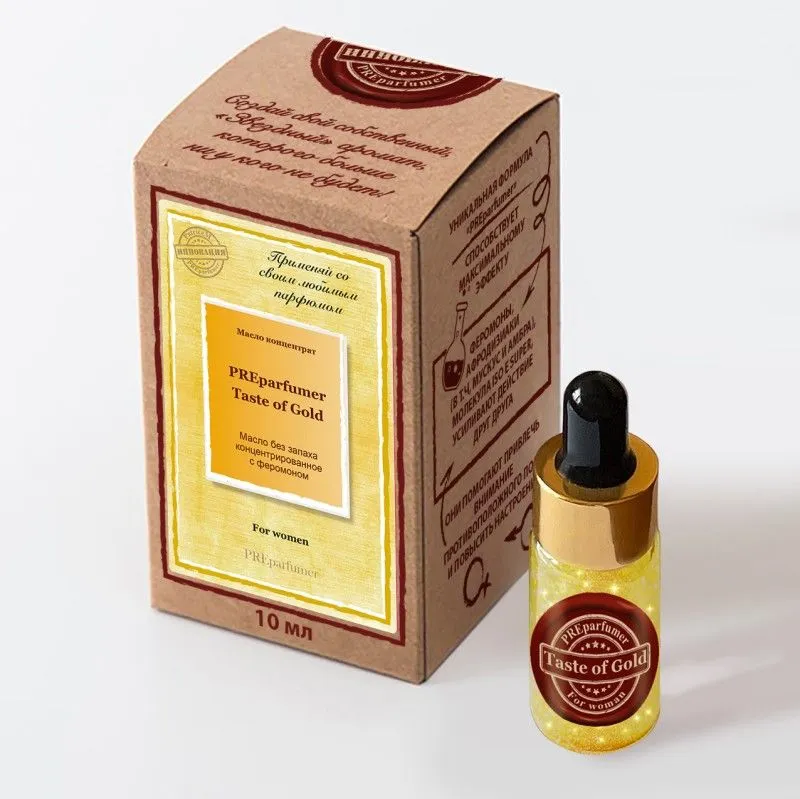 Масло-концентрат «PreParfumer Taste Of Gold» придаст аромату вашего парфюма «дорогой», изысканный и статусный акцент. А так же, нежные, чувственные, глубокие, цветочно-амброво-древесные ноты.