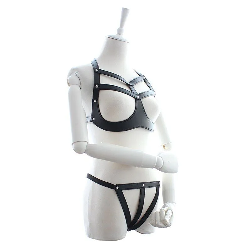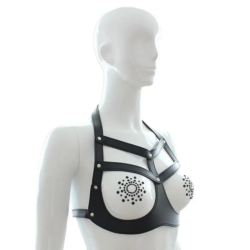 Женская портупея прекрасно дополнит ваш ролевой костюм, придавая ему воинственности. Выполнена из нескольких ремней, соединенных между собой при помощи металлических колец. Аксессуар можно носить как в повседневной жизни поверх одежды, так и сделать его пикантной деталью своего ролевого интимного костюма.