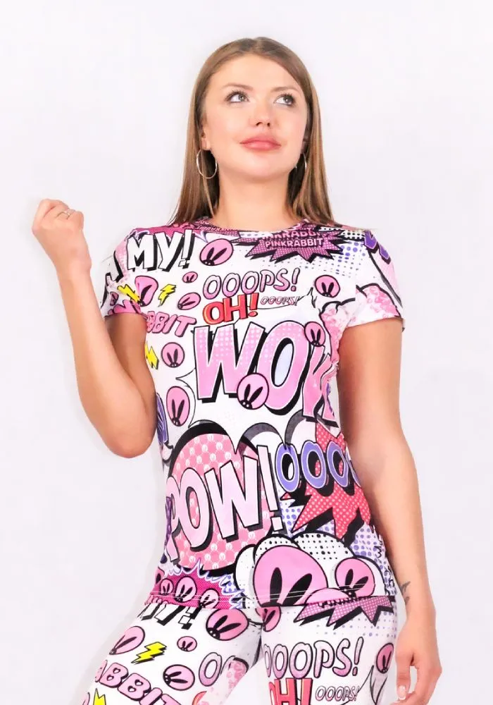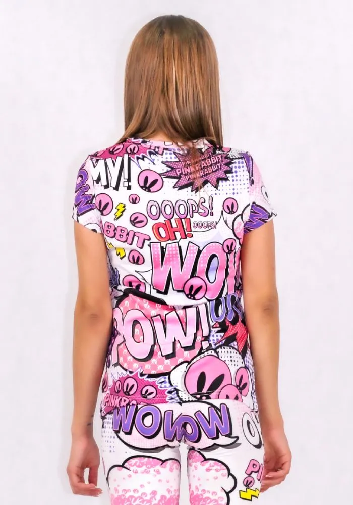 Брендированная футболка от Pink Rabbit с ярким оригинальным принтом. В этой футболке вы точно не останетесь без внимания и привлечёте множество заинтересованных взглядов. Выполнена из удобного и эластичного материала.
