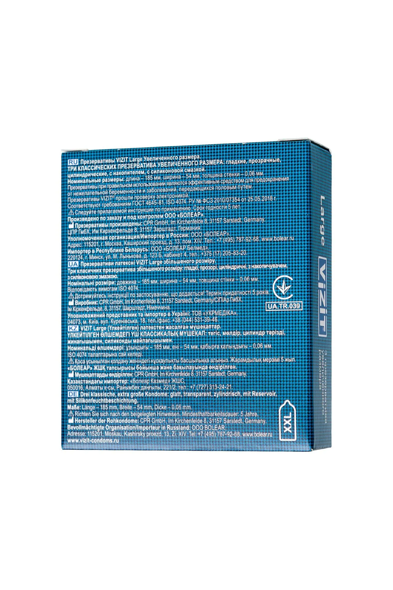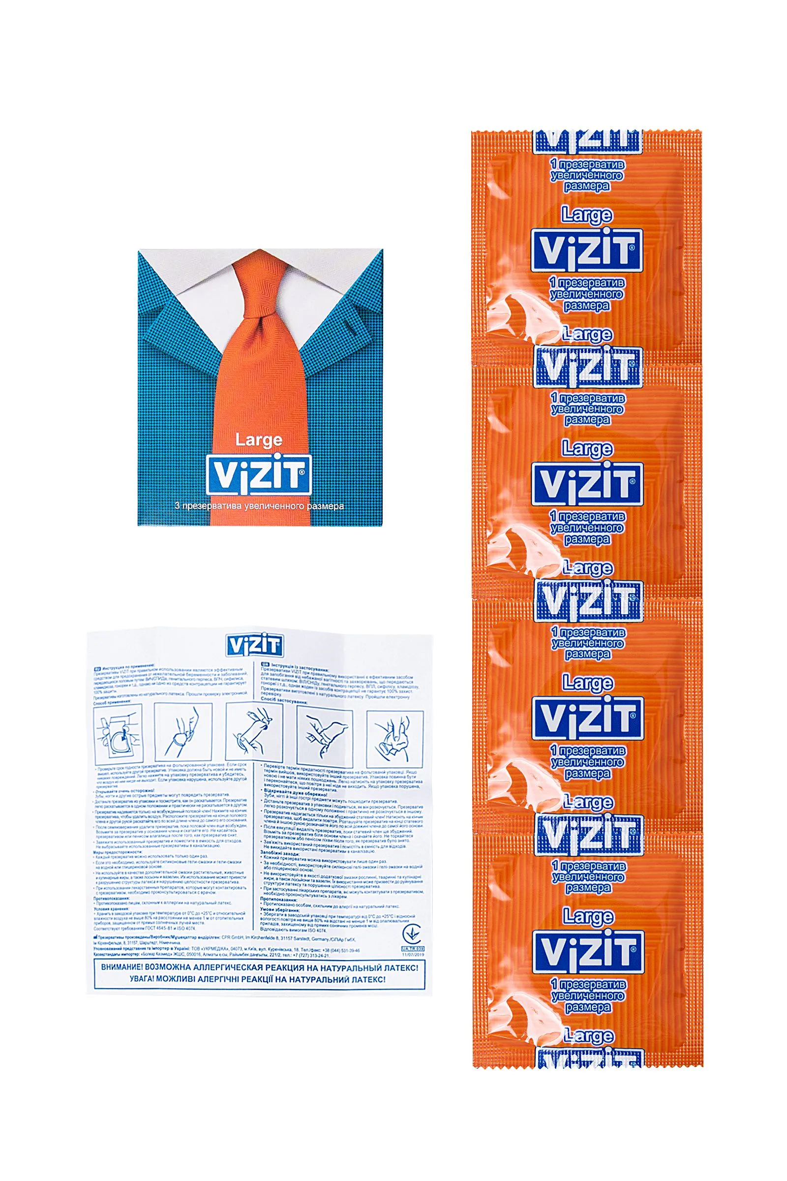 Презервативы VIZIT Large Увеличенного размера, латекс, 18,5 см Невероятно, но факт! Большинство мужчин, имеющих средний размер достоинства, покупают презервативы VIZIT Large увеличенного размера и чувствуют себя превосходно! Благодаря эластичности презерватив комфортно располагается на пенисе среднего и выше среднего размера – никакого ощущения дискомфорта или сдавленности – тот случай, когда размер имеет значение. Представьте, как приятно удивится девушка, когда вы откроете упаковку с презервативами VIZIT Large. Отдайтесь сладкому вожделению с головой, не думая о безопасности, с презервативами VIZIT Large. Цилиндрическая форма контрацептивов с накопителем из эластичного латекса дарят уверенность в надежности и защите от нежелательных факторов. Попробуйте всю линейку презервативов VIZIT, чтобы найти свой идеальный контрацептив. Лаконичный дизайн в виде пиджака и галстука, на котором изображен вид презервативов, легко поможет сделать выбор из широкого ассортимента контрацептивов VIZIT. Стильная упаковка и европейское качество презервативов VIZIT по привлекательной цене для вашего удовольствия. Эластичные – прочные и надежные Безопасные – натуральный латекс Силиконовая смазка – обеспечивает комфортный половой акт Увеличенного размера – 190 мм длина, 54 мм ширина Нейтральный запах – не отвлекает Количество штук в упаковке: 3 шт. Количество штук в упаковке: 12 шт