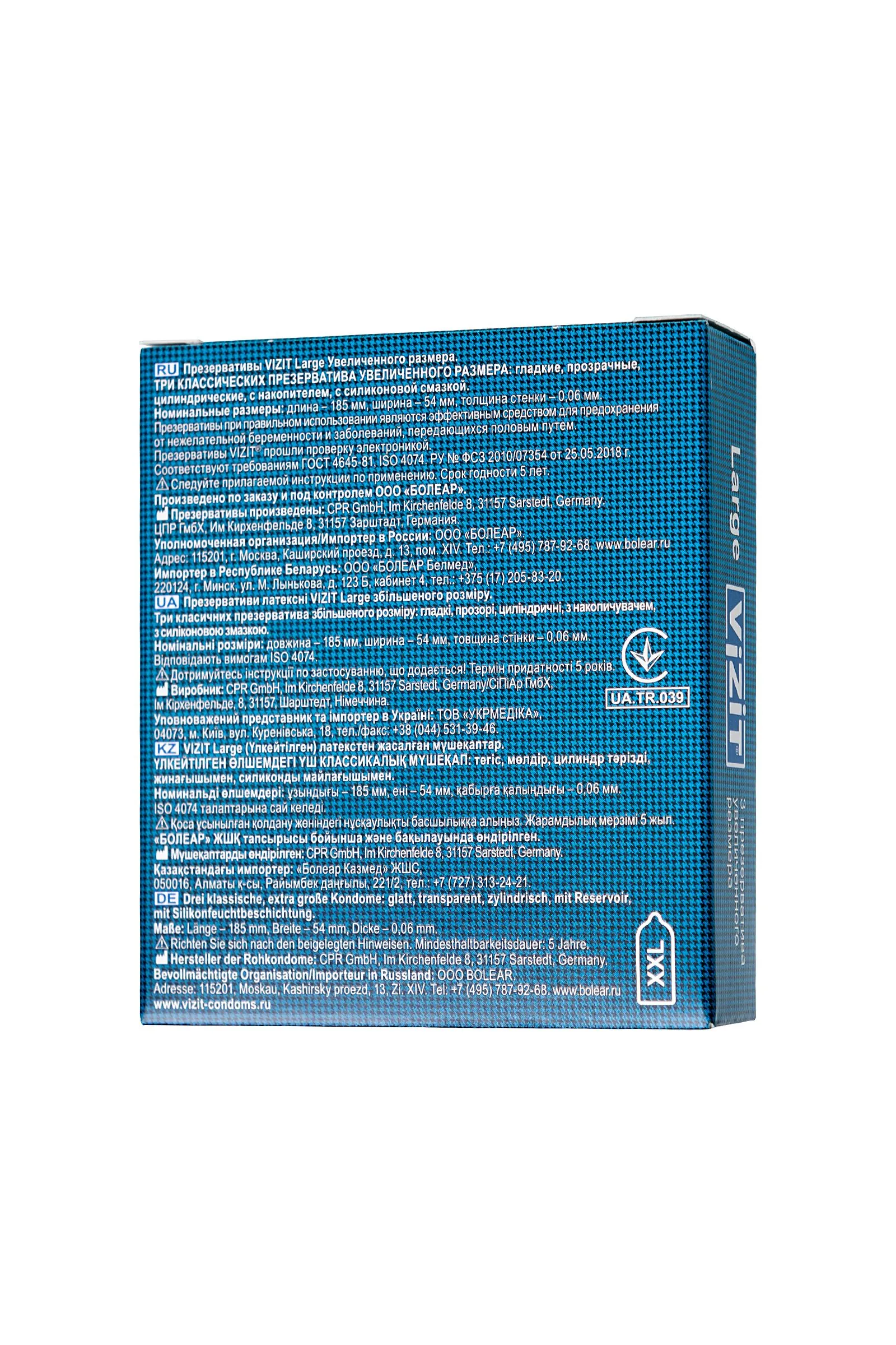 —Презервативы Vizit, увеличенного размера, латекс, 3 шт