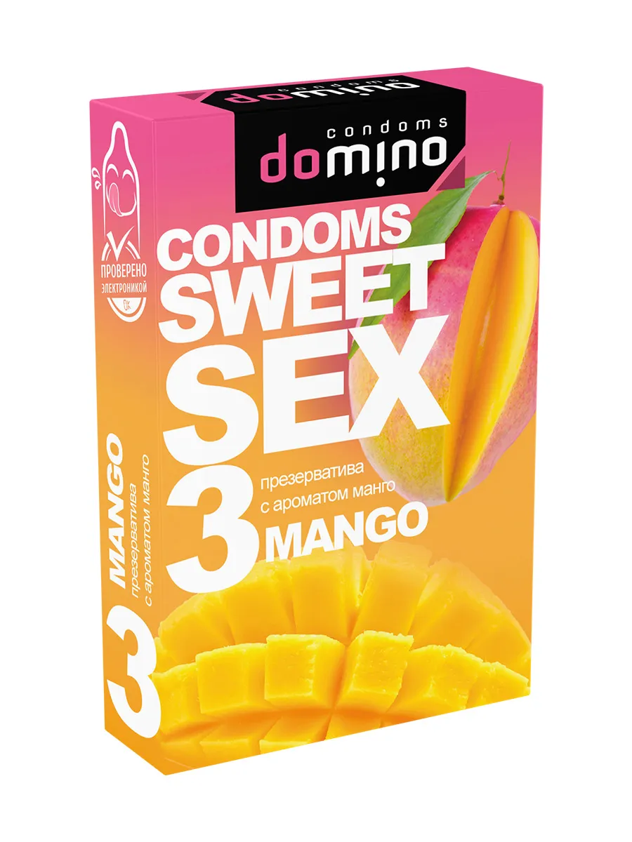 Domino Sweet sex - это презервативы для орального секса с пленительным ароматом манго, который пробудит в Вас страсть и подарит необходимый настрой во время прелюдии и предварительных ласк. С ними Вы сможете погрузиться в атмосферу соблазна и полностью раствориться в удовольствии, буквально попробовав своего партнера на вкус.