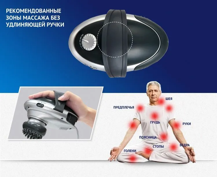 • Регулируемая интенсивность массажа регулятором на корпусе массажера