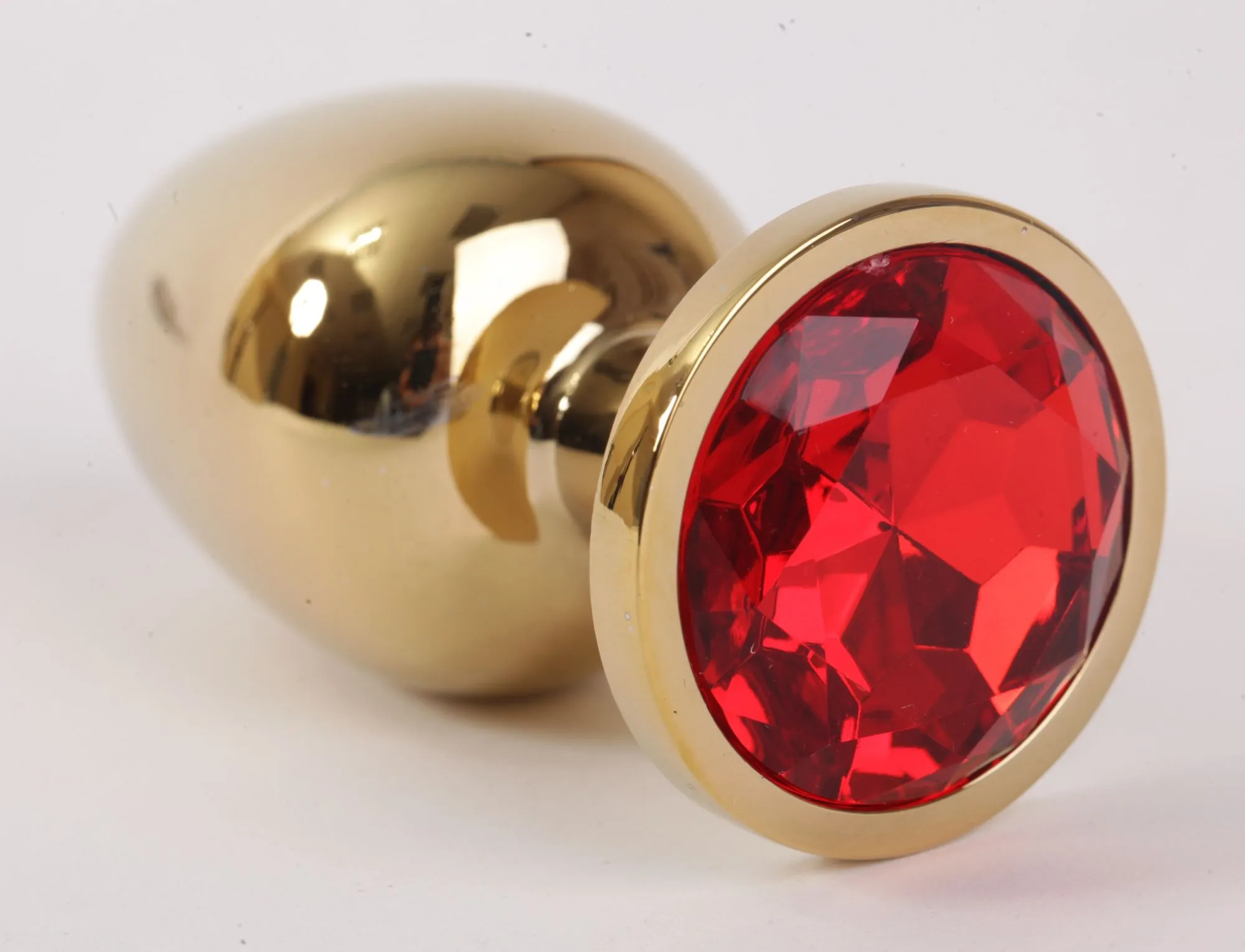 Анальная пробка золото со вставкой красный 9,5х4см 47003-2-MM