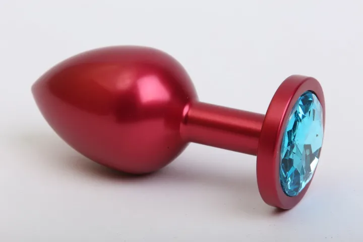 Анальная пробка металл красная с голубым стразом 7,6х2,8см 47414-1MM