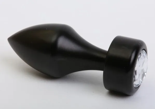 Анальная пробка металл черная с прозрачным стразом 7,8х2,9см 47440-4MM
