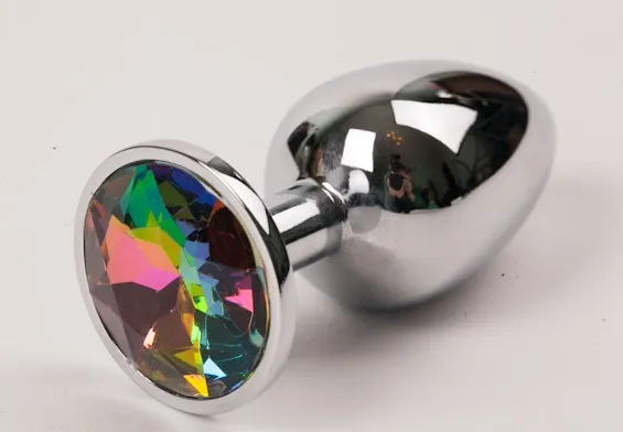Анальная пробка из металла под серебро с ярким кристаллом  внесет разнообразие в вашу интимную жизнь. Обладает сглаженной  формой, что позволяет обеспечить легкое введение и комфортное длительное ношение.  Снабжена ограничительным основанием для безопасного использования.  Характеристики:  Общая длина 7,6 см, рабочая длина 6 см, наибольший диаметр: 2,8 см., вес 60 гр. Упаковка: индивидуальный тканевый мешочек и коробка.