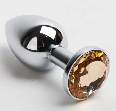 Анальная пробка серебро со вставкой желтый страз S 47019-MM