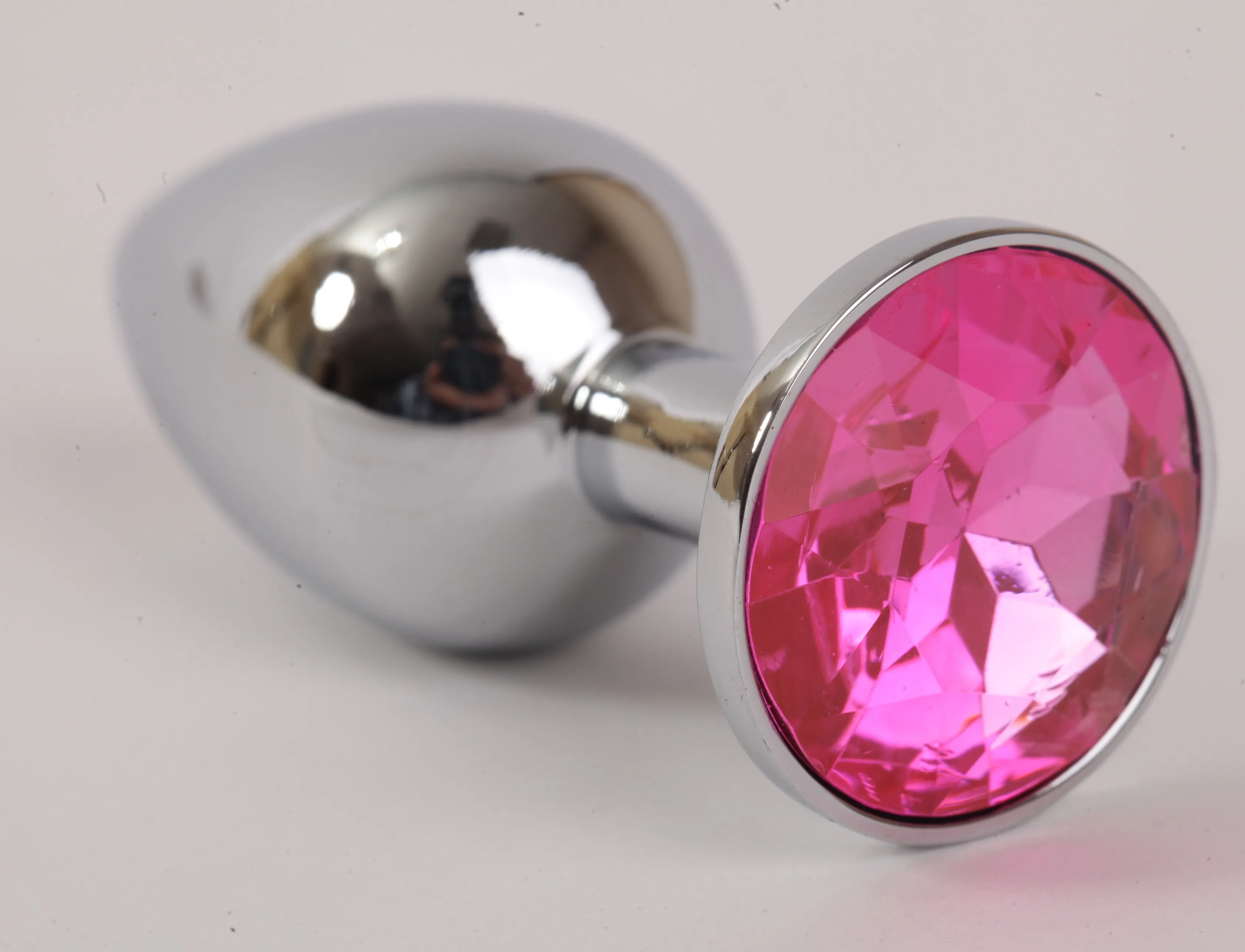 —Анальная пробка серебро со вставкой розовый страз S 47021-MM