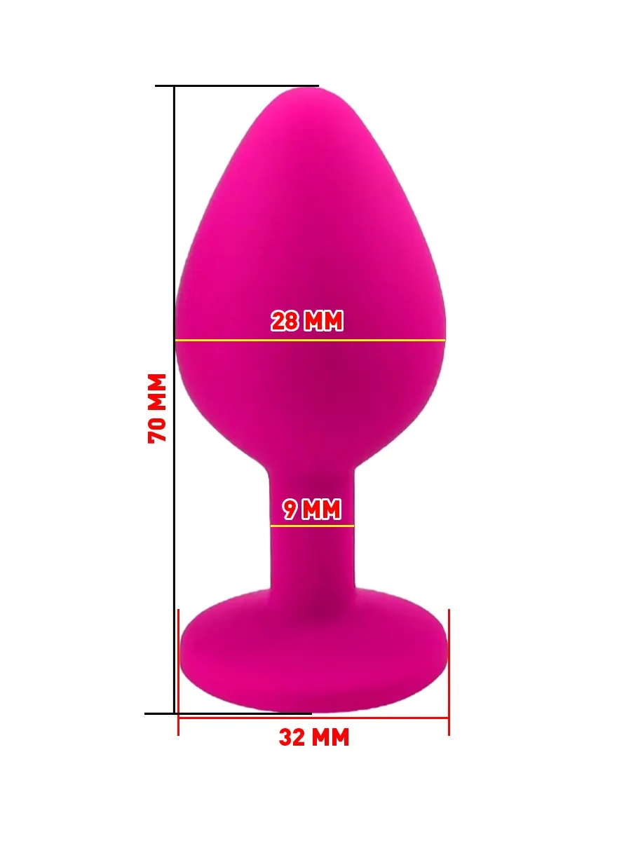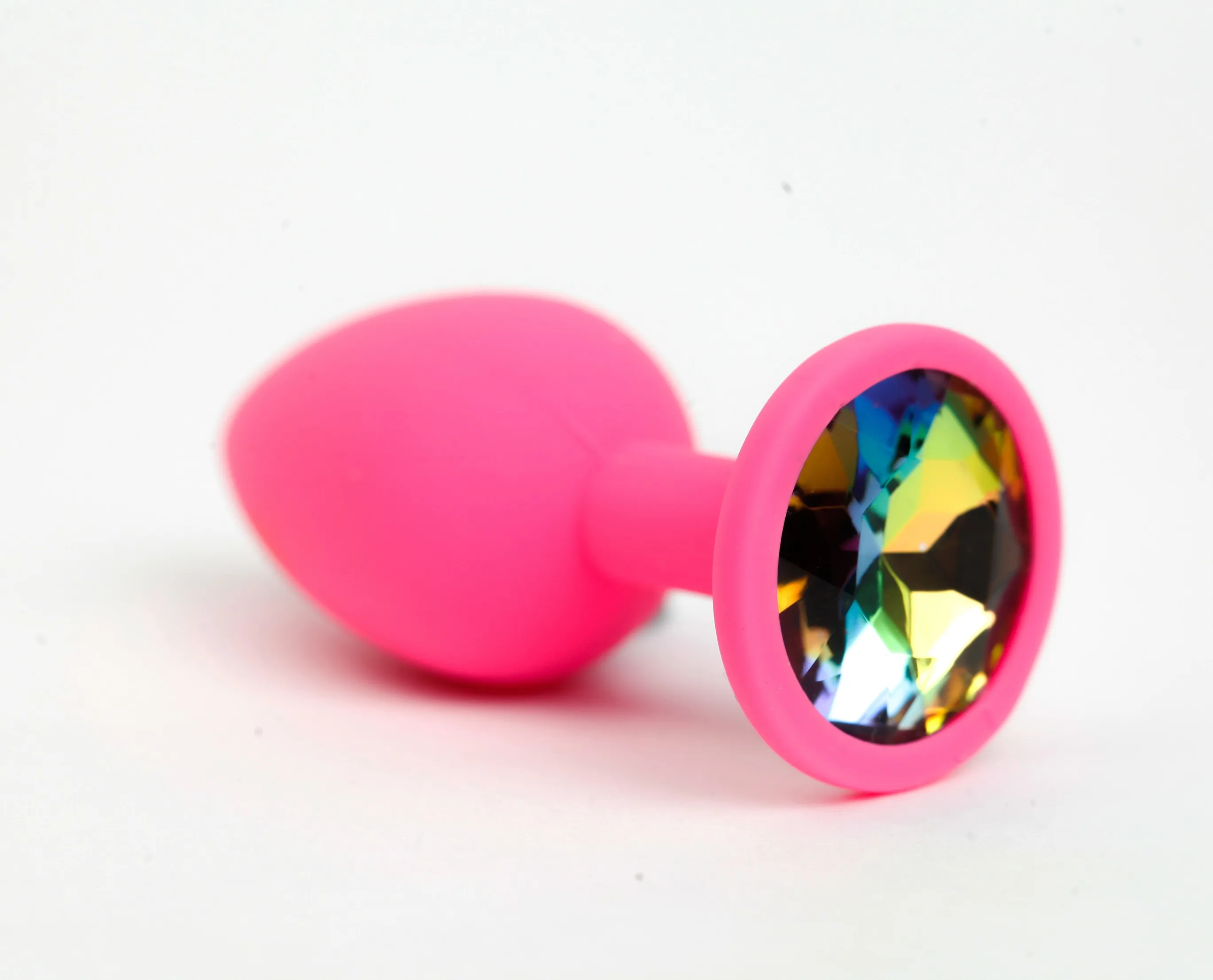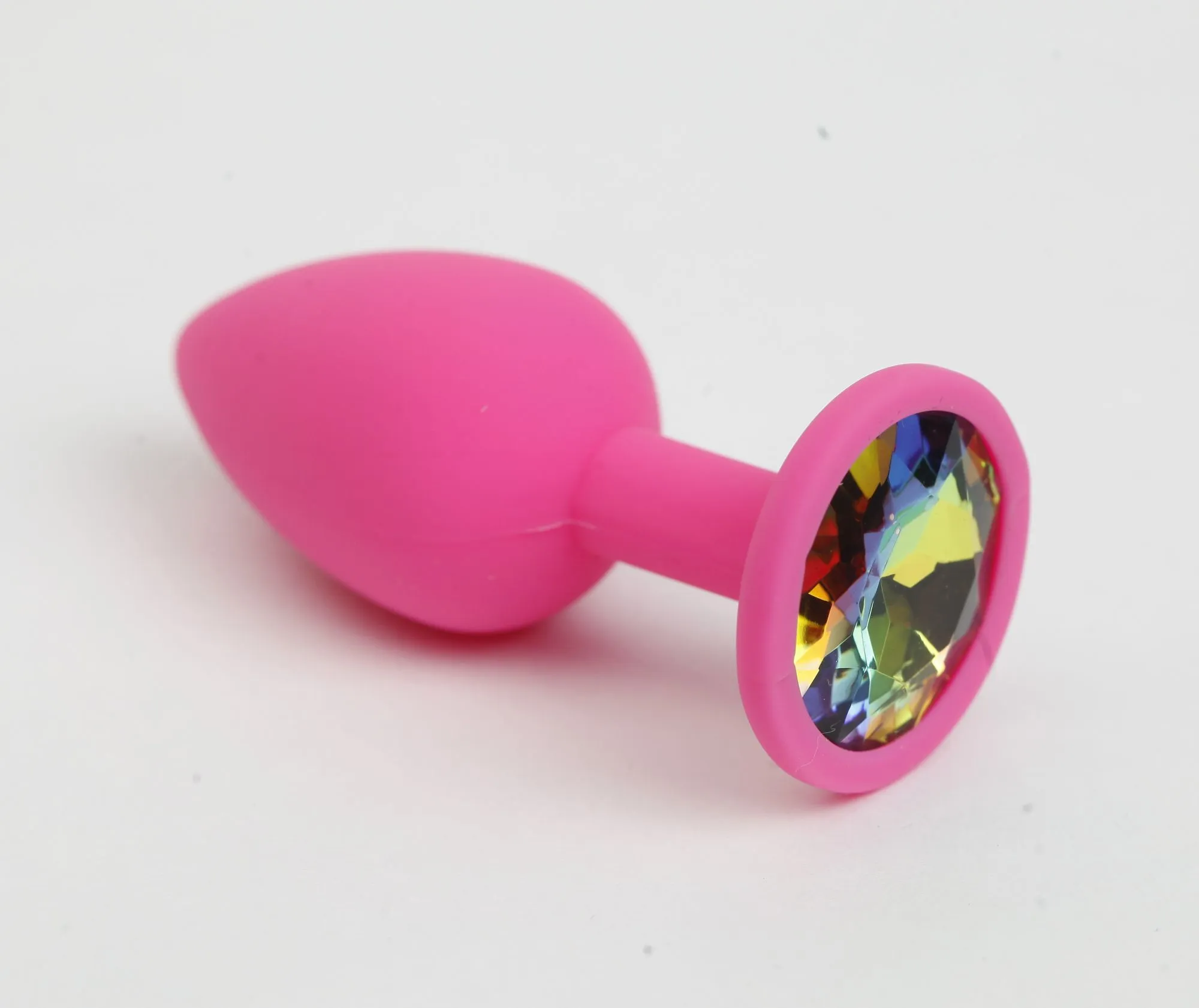 Анальная пробка силиконовая розовая с радужным стразом 7,6х2,8 см 47512-MM