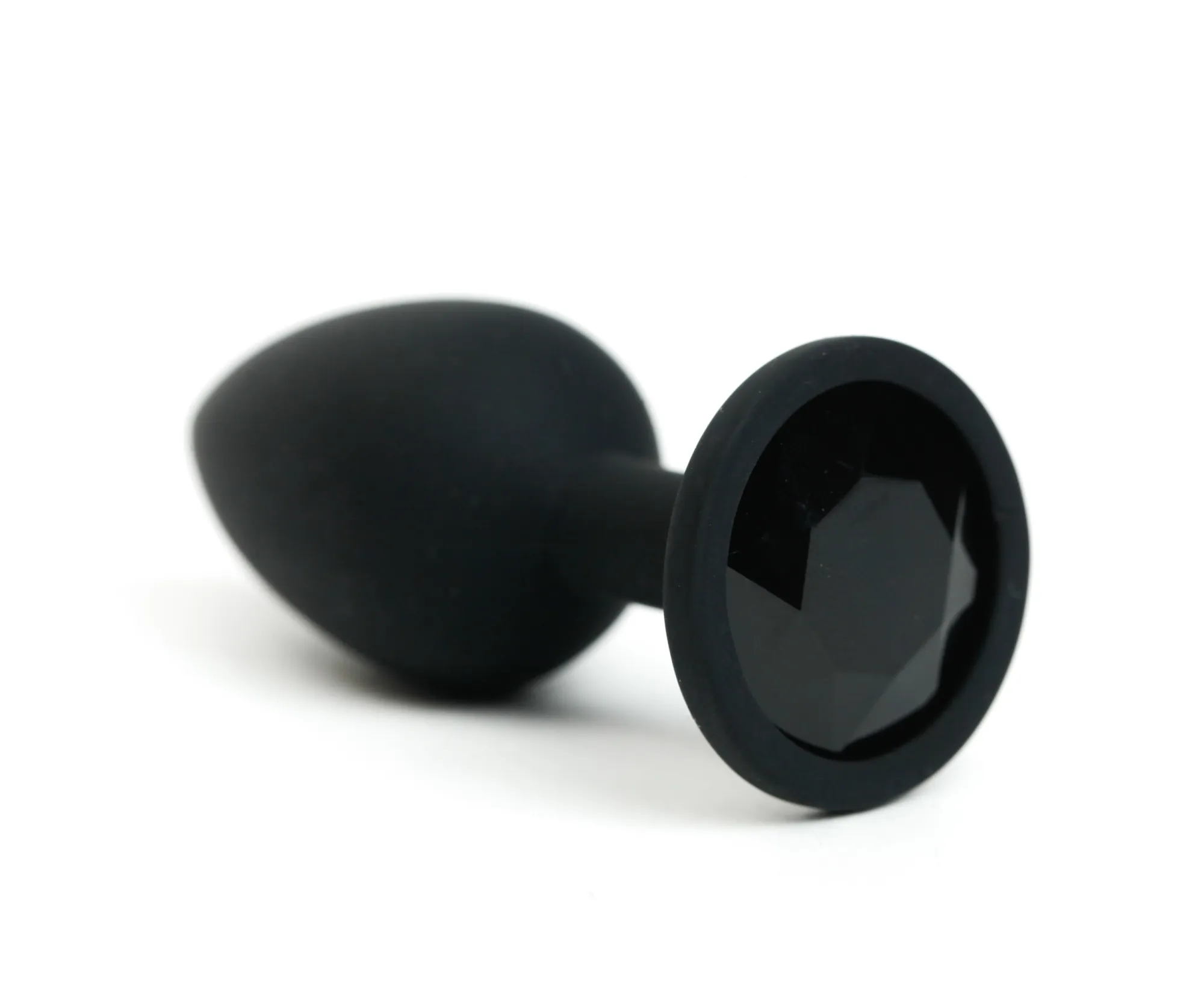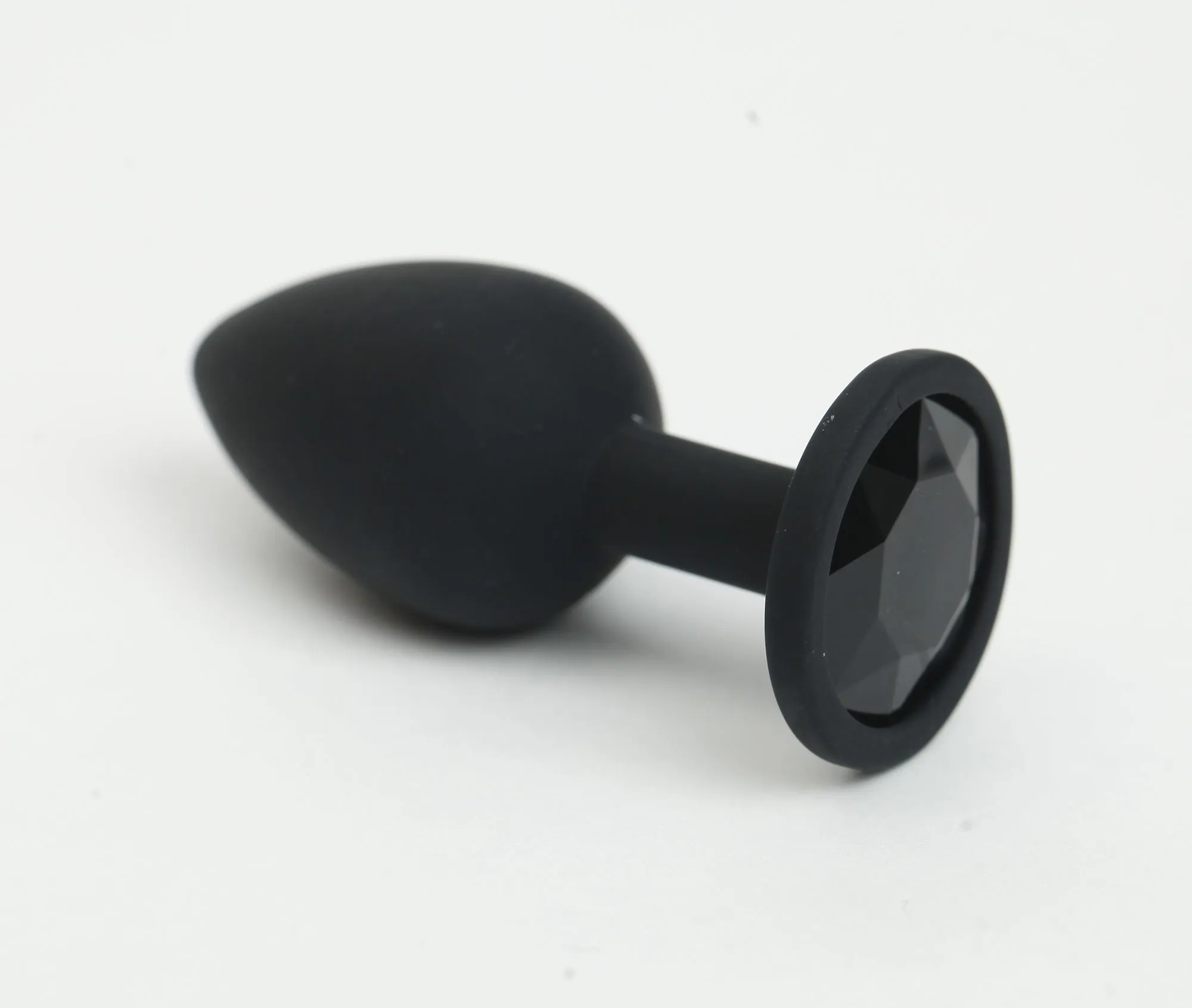 —Анальная пробка силиконовая черная с черным стразом 7,6х2,8 см 47509-MM