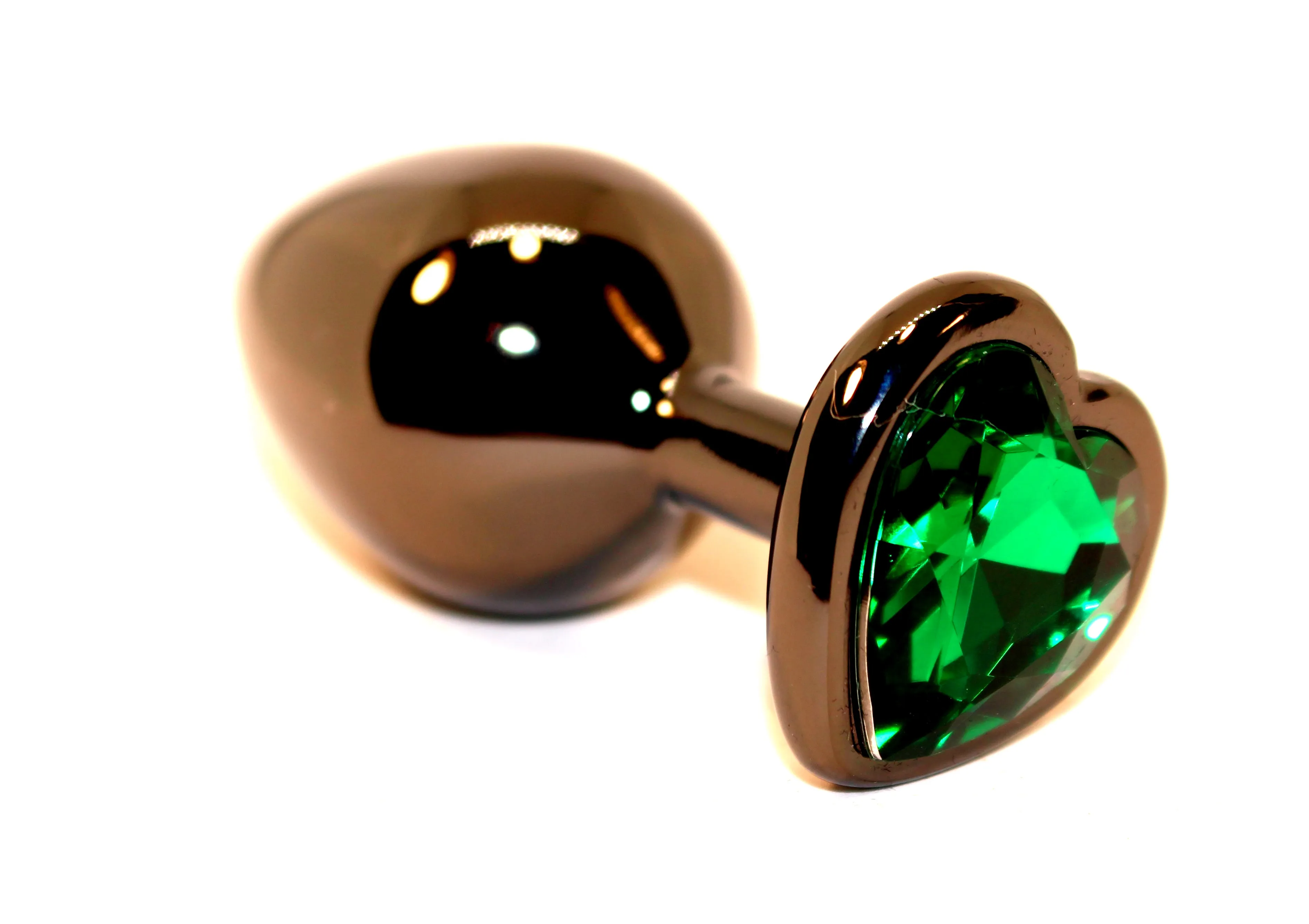 —Пробка анальная черная 7,5х2,8см с сердечком зеленый страз 47438-6MM
