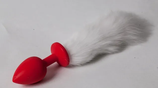 Красная силиконовая анальная пробка, дополнена пушистым белым хвостиком. Общая длина пробки 19 см, рабочая длина 4,5 см, максимальный диаметр 2,8 см. Упаковка полиэтиленовый пакетик.
