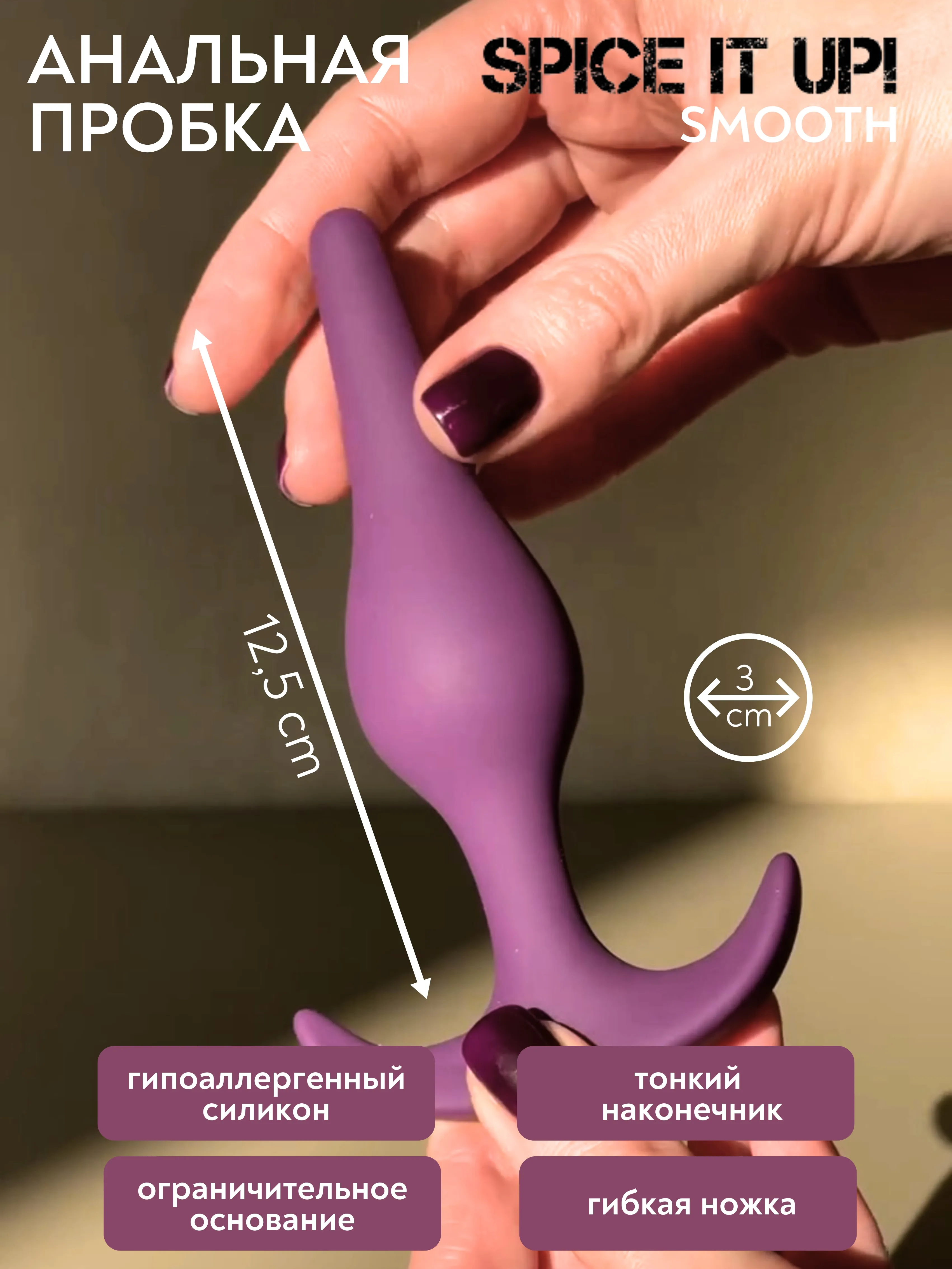 Анальный стимулятор обеспечивает прекрасную стимуляцию для подготовки к анальному сексу и отлично подходит для первого знакомства с анальными ласками. Его тонкий наконечник обеспечивает удобное введение, в то время как надежное основание обеспечивает комфортное ношение и позволяет использовать пробку длительное время. Изготовленная из гипоаллергенного силикона, эта пробка безопасна для чувствительной кожи и может быть прокипячена для тщательной стерилизации, обеспечивая чистоту и гигиену. Длина ограничительного основания - 8см, ширина - 2 см.