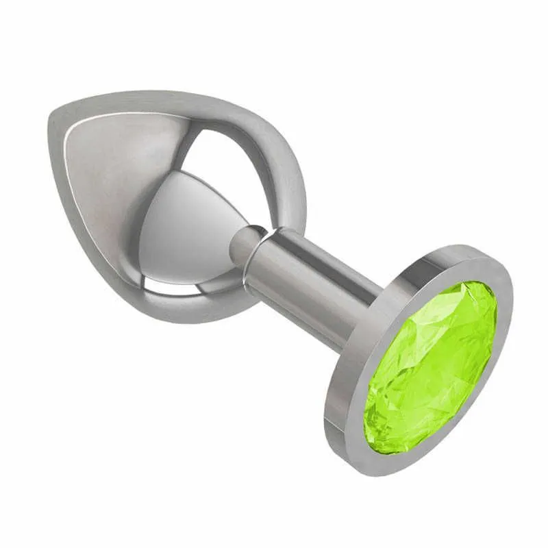 Анальная втулка Silver средняя c кристаллом цвета лайма