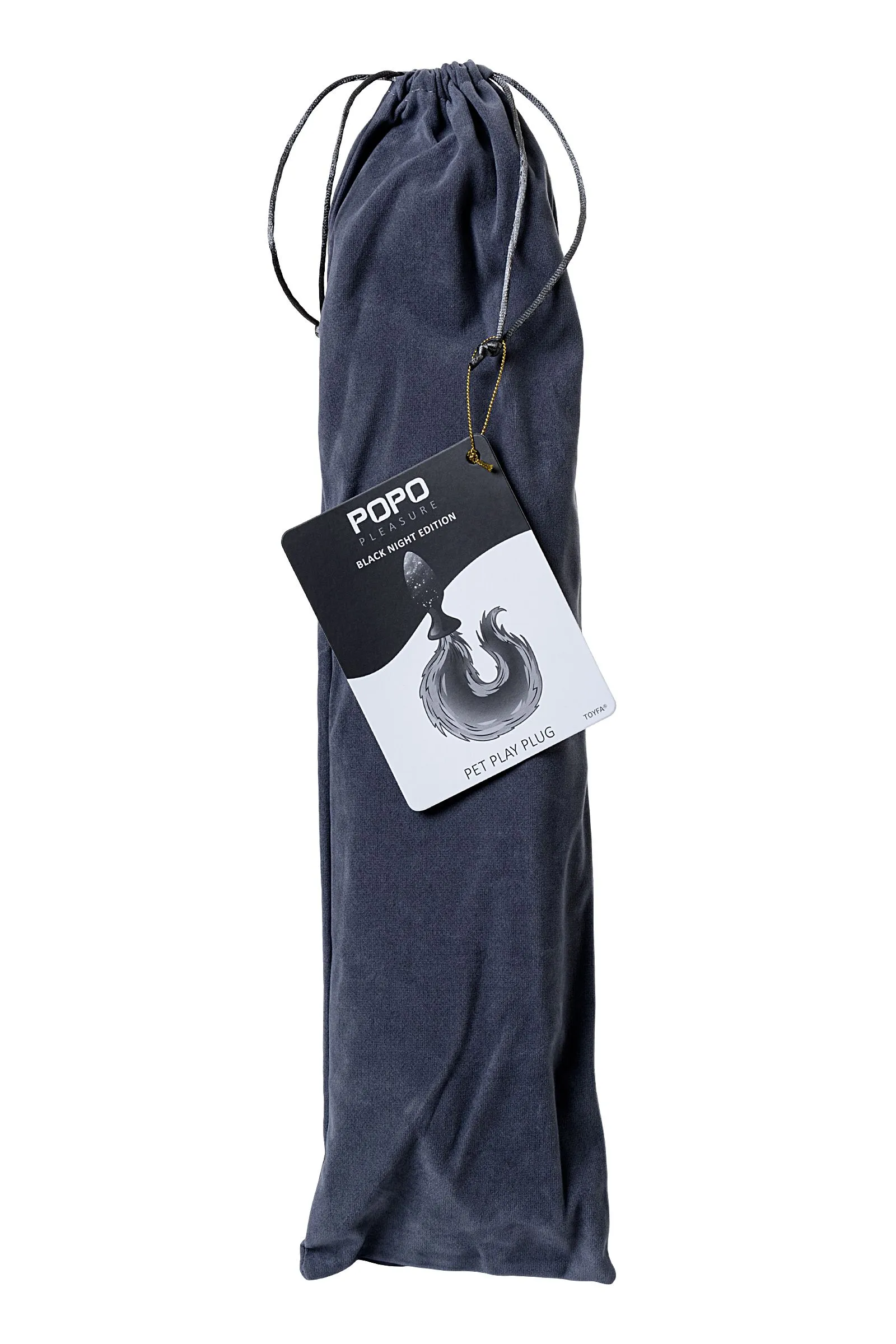 —Анальная втулка с бело-розовым хвостом POPO Pleasure by TOYFA, M, силикон, черная, 45 см, Ø 2,5 см