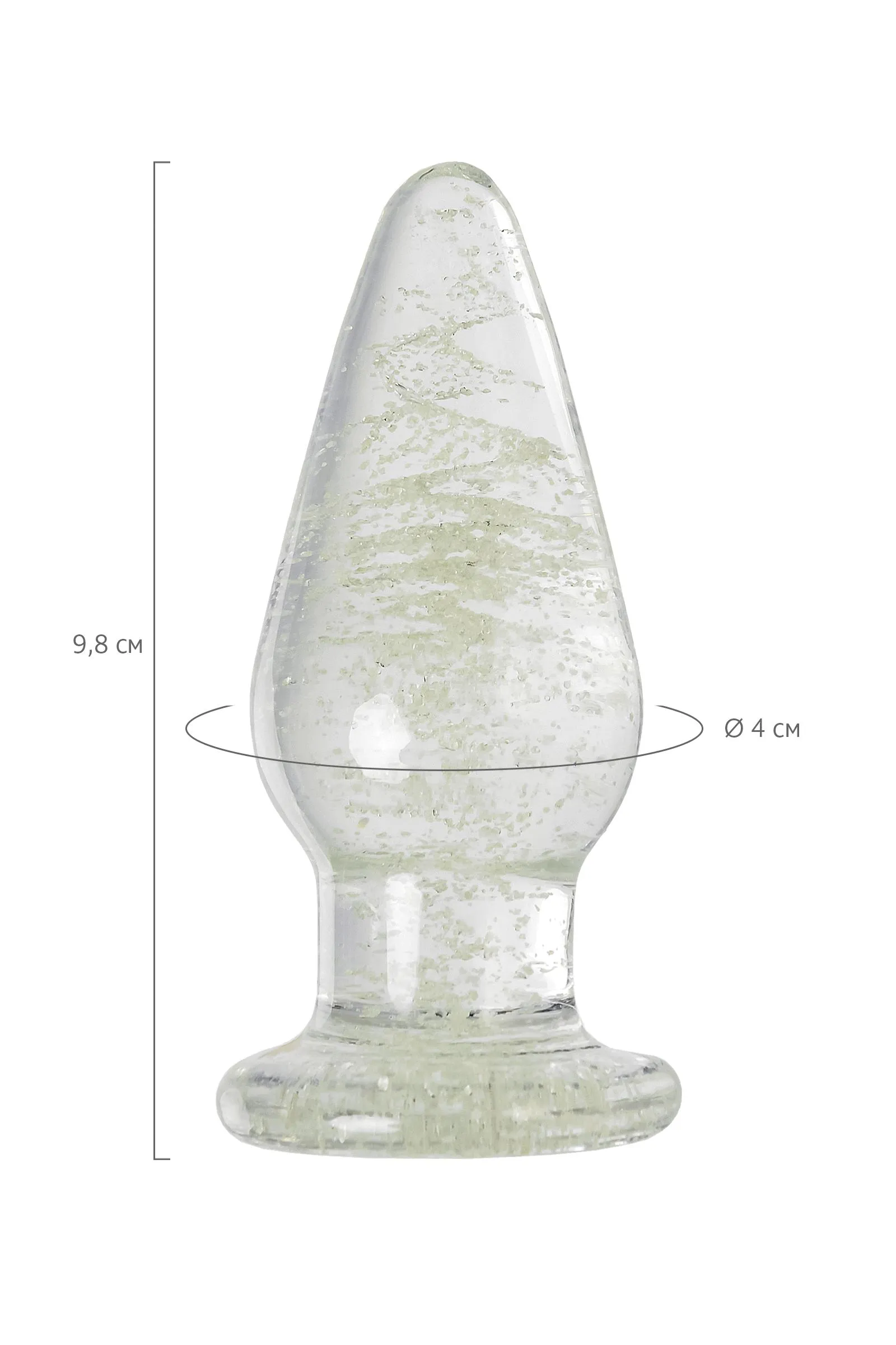 Прозрачная анальная втулка из закаленного стекла содержит флуоресцентные микрочастицы, которые светятся в темноте. Такой необычный дизайн помогает внести в интимные игры разнообразие. Достаточно “зарядить” игрушку под дневным или искусственным светом, чтобы насладиться ее мерцанием и свечением в темноте. Оптимальный размер, обтекаемая форма конуса и наличие ограничителя делают использование анальной игрушки безопасным. Используйте эту втулку в качестве расширителя для подготовки к анальному сексу. Широкое основание эффектно выглядит в теле, позволяя по-новому рассмотреть интимные места. Стекло - это один из самых гигиеничных и гипоаллергенных материалов. Стекло хорошо поддается температурному воздействию – это значит что втулку можно нагревать или охлаждать, и экспериментировать с ощущениями. Сделайте свою сексуальную жизнь ярче и насыщеннее. гипоаллергенный и гигиеничный материал - безопасен и прост в уходе можно использовать со всеми видами смазок диаметр 4 см - оптимальный для начинающих и опытных можно нагревать и охлаждать