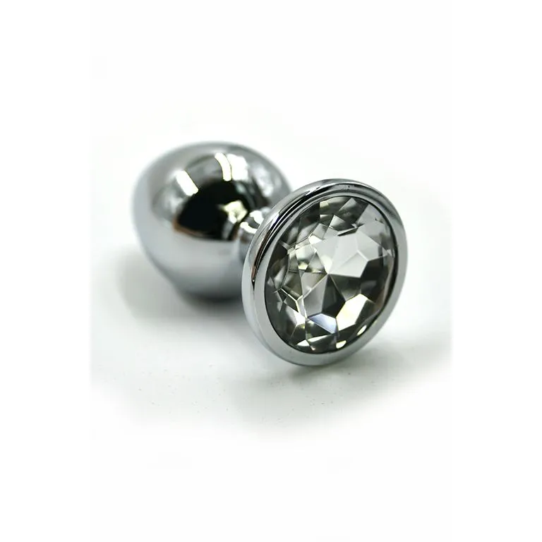 Серебристая анальная пробка с прозрачным кристаллом (Small)