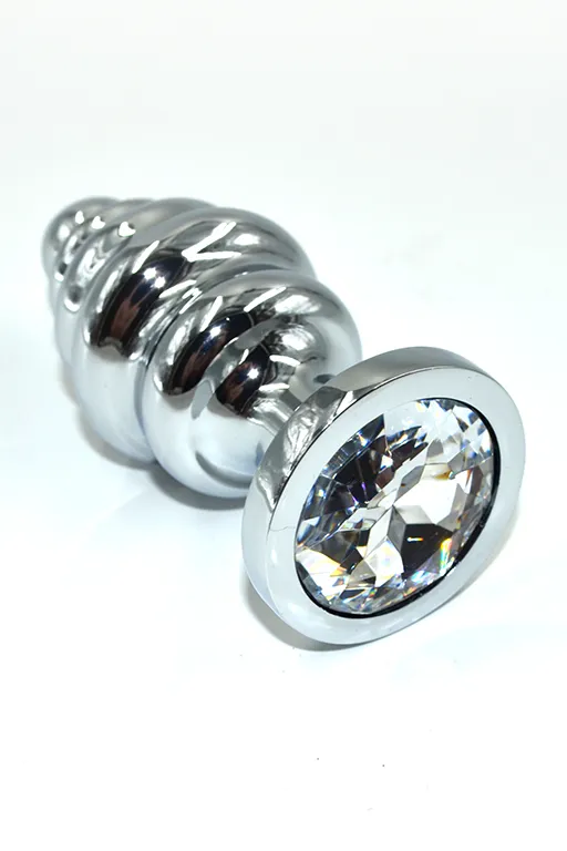 Ребристая анальная пробка с прозрачным кристаллом (стразом) – это декоративное украшение, имеющее волнообразную проникающую анальную часть и имитацию драгоценного камня круглой формы в основании. Идеально подходит для украшения тела, сужения влагалища, стимуляции и подготовки к анальному сексу.