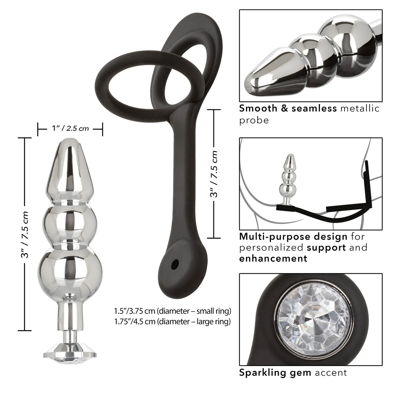 STARFUCKER BEADED PLUG - анальная елочка с прозрачным кристаллом и эластичными силиконовыми кольцами для члена и мошонки – это декоративное украшение, имеющее проникающую анальную часть и имитацию драгоценного камня круглой формы в основании. Идеально подходит для украшения тела, подготовки к анальному сексу. Благодаря эрекционным кольцам для члена и мошонки стимуляция более яркая и продолжительная.