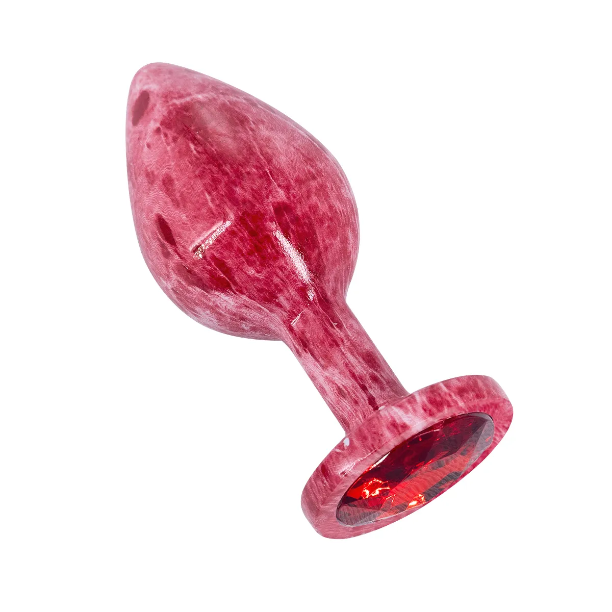 Эмалированная алюминивая анальная пробка с мраморным узором и кристаллом – это декоративное украшение, имеющее проникающую анальную часть и имитацию драгоценного камня круглой формы в основании. Идеально подходит для украшения тела, сужения влагалища, подготовки к анальному сексу.